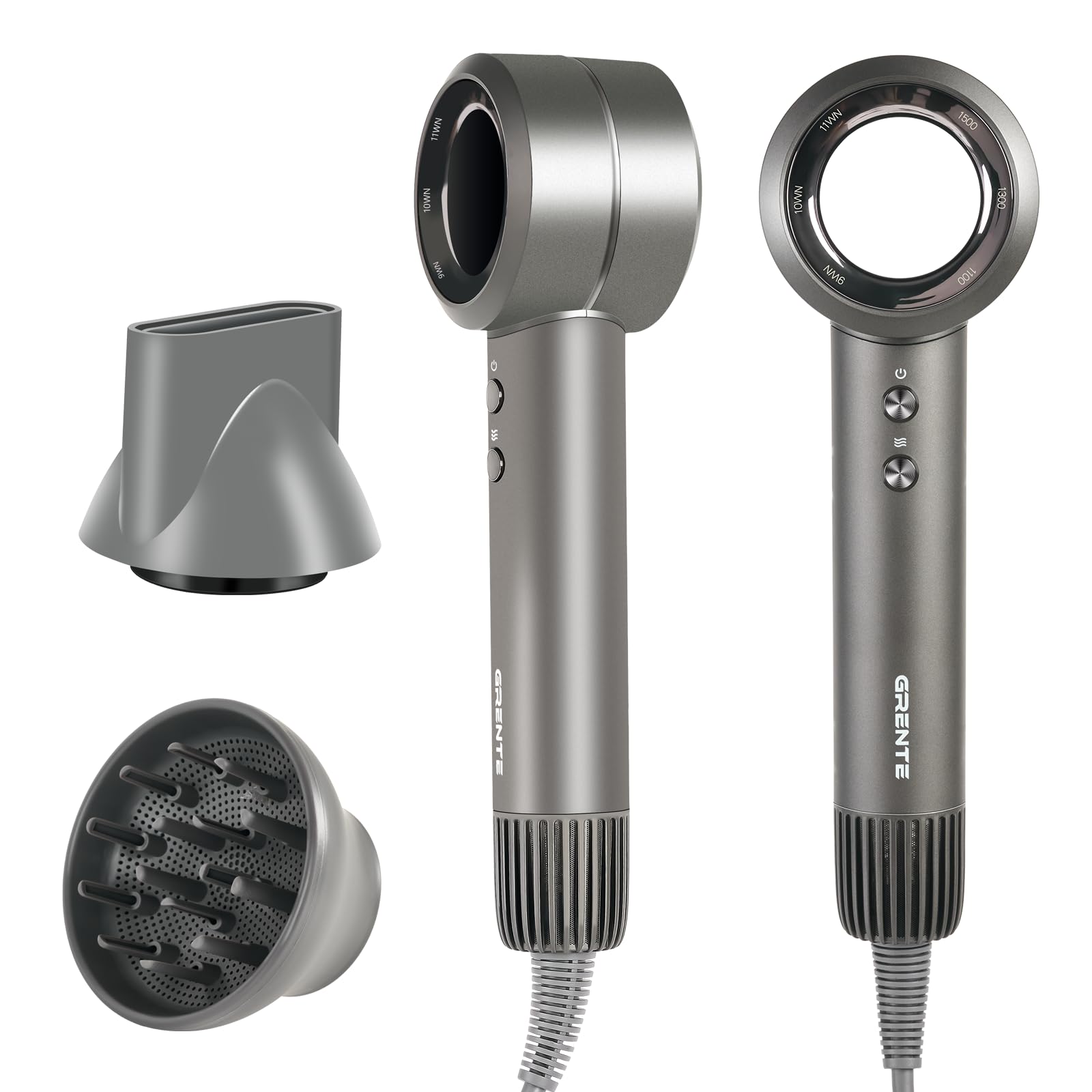 Grente High Speed Hair Dryer - 110,000 RPM Brushless Two Head, Grey