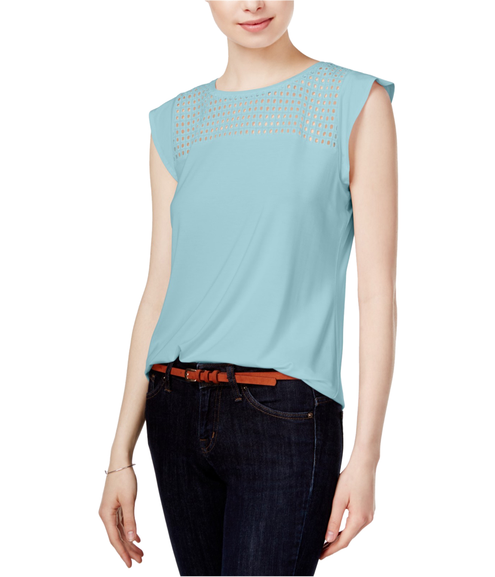 Constructed from 95% rayon and 5% spandex, this medium-weight blouse offers both comfort and a flattering fit. The solid heathered pattern with a smooth cotton texture adds a touch of understated elegance to your casual look. The embroidered eyelet detailing at the chest adds a hint of sophistication, while the cap sleeves provide a stylish touch. With a classic fit and a crew neckline, this blouse is the perfect blend of comfort and style. Whether you're heading out for a casual outing or looking to add a modern touch to your everyday look, this pullover blouse is your go-to choice. Manufactured in the Philippines, this blouse embodies maison Jules's commitment to quality and fashion-forward design.