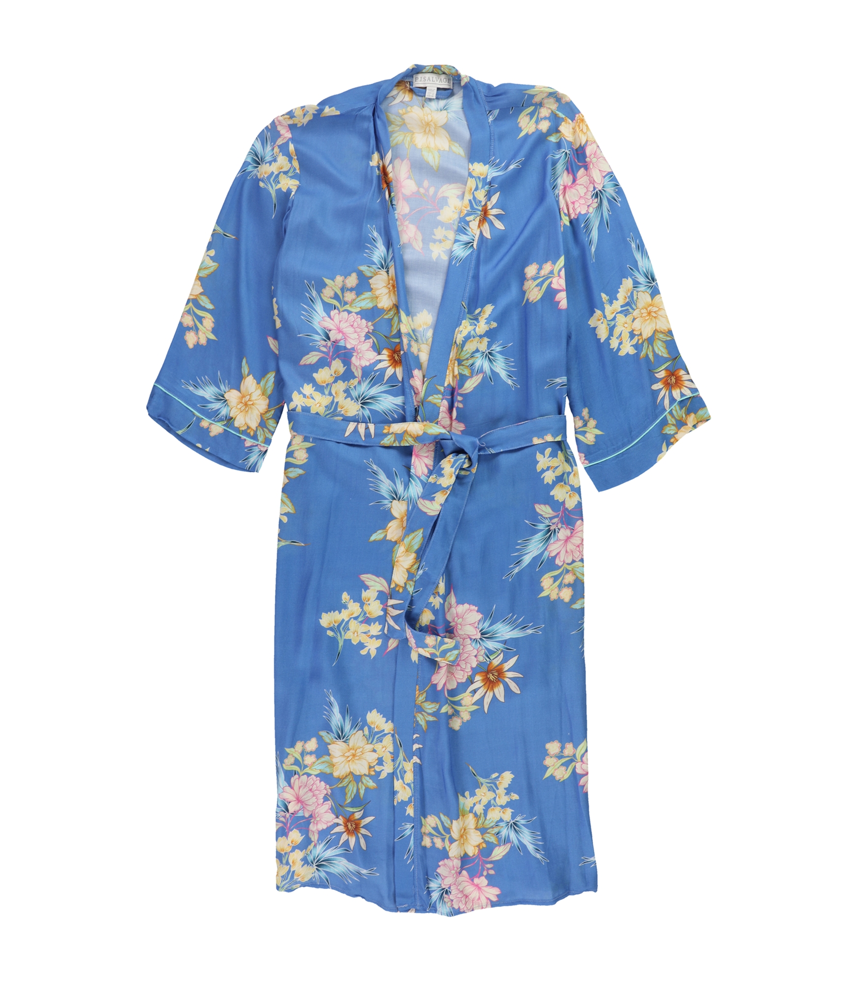 P.J. Salvage Womens Floral Print Belted Robe, royal, M