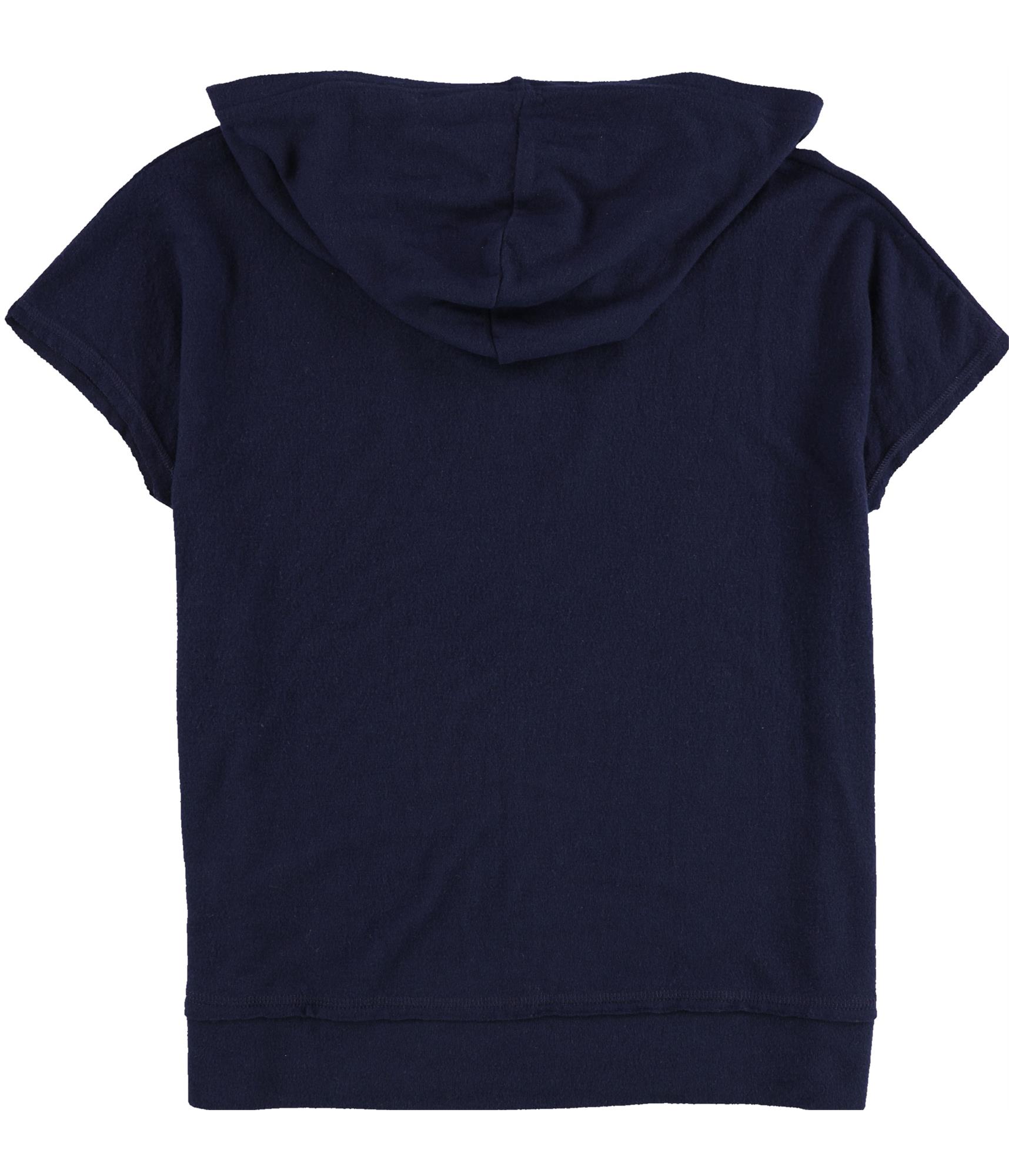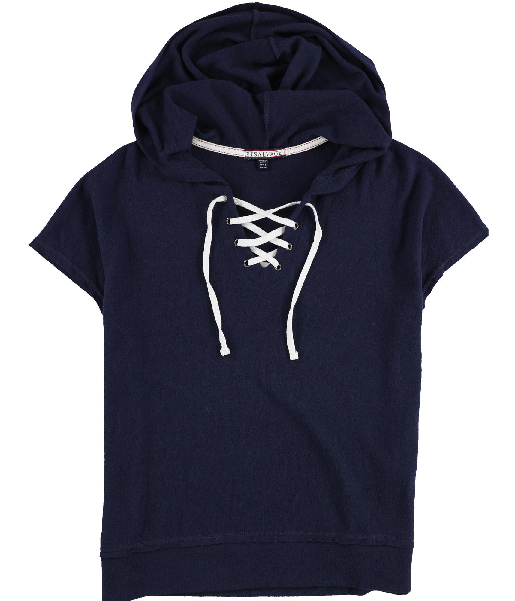 P.J. Salvage Womens Solid Tie Front Pajama Hoodie, navy, S