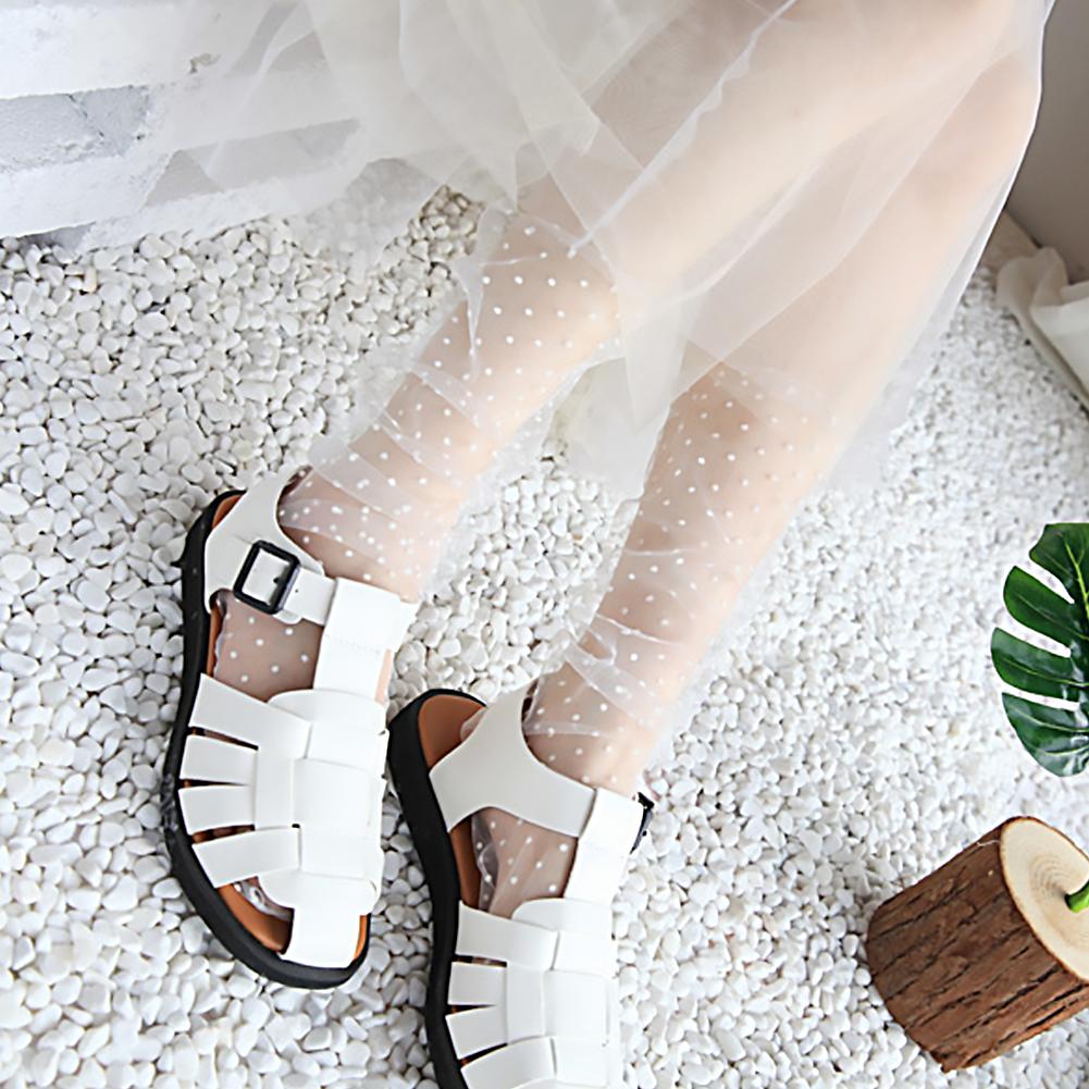 4. Versatile Fashion Accessory: These trendy sheer socks are a must-have for any wardrobe, offering incredible versatility. Effortlessly pair them with a wide of footwear such as flats, heels, sneakers, or even sandals. They seamlessly complement both casual and dressy outfits, instantly adding a unique and sophisticated flair to your overall look.