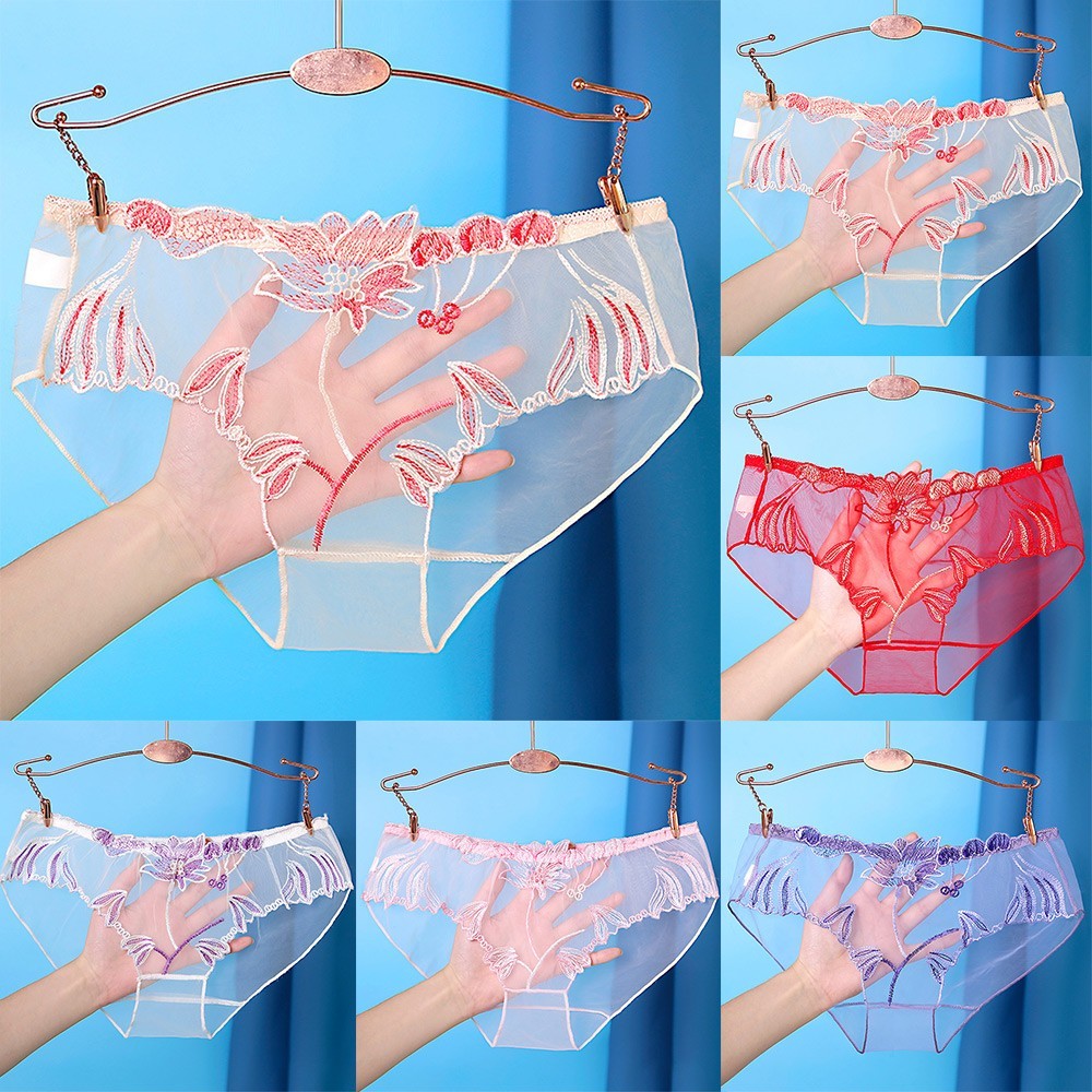 * Item Description:️Women Underwear Lace-Trimmed Mesh Comfortable Transparent Breathable Large Size Seamless Embroidered Briefs