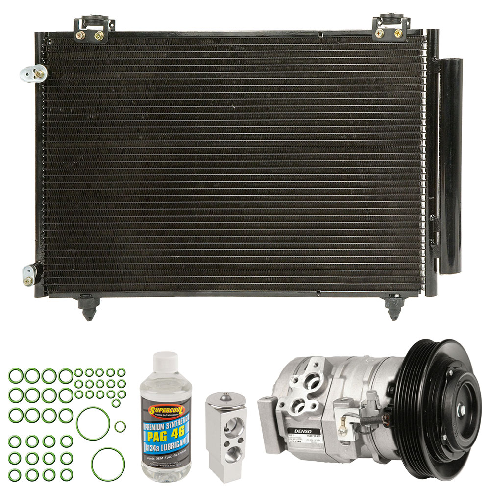 This 5 piece Premium Installers AC Kit includes an OEM new AC compressor, condenser with built in accumulator/drier, expansion device, a bottle of AC compressor oil and a pack of the correct o-rings for your system to prevent leaks. This kit is designed to include all of the right parts to make the repair process easier and save you money. The accumulator/drier used in your AC system is built into the condenser, so to make things easier this kit includes a new condenser with built in accumulator/drier.