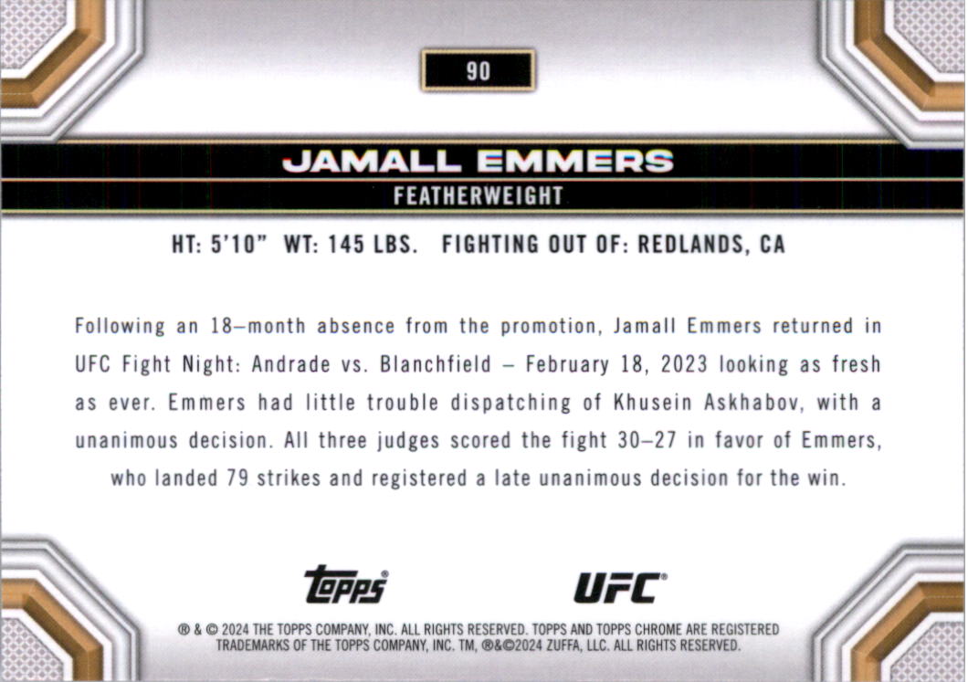 2024 Topps Chrome UFC #90 Jamall Emmers RC - UFC