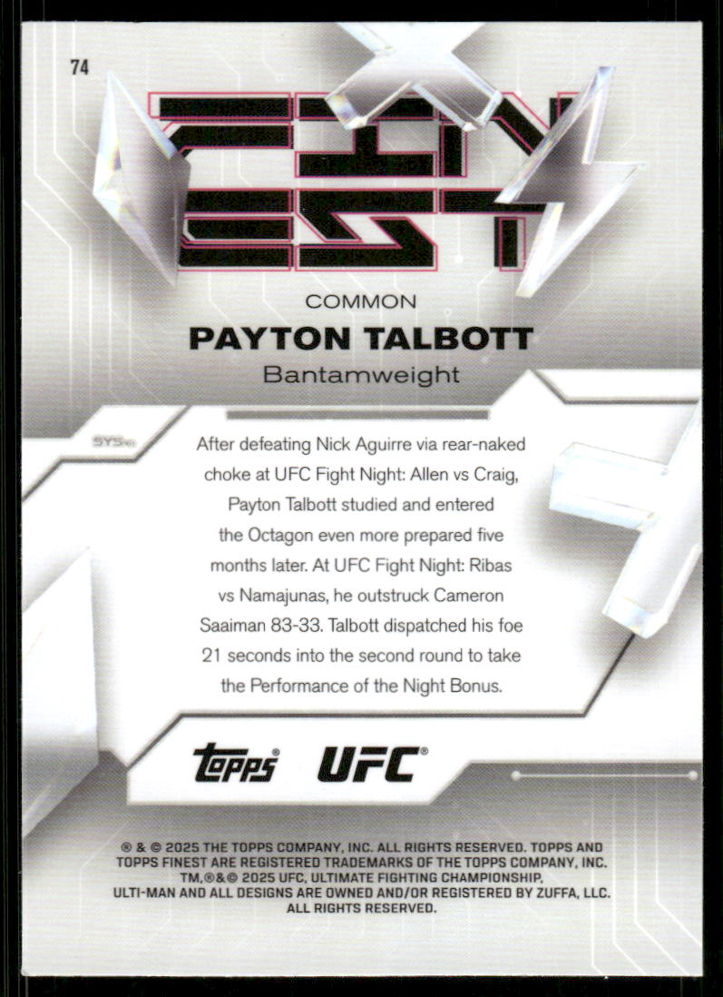 2025 Finest UFC Checkerboard Purple Refractors #74 Payton Talbott C /150 - UFC