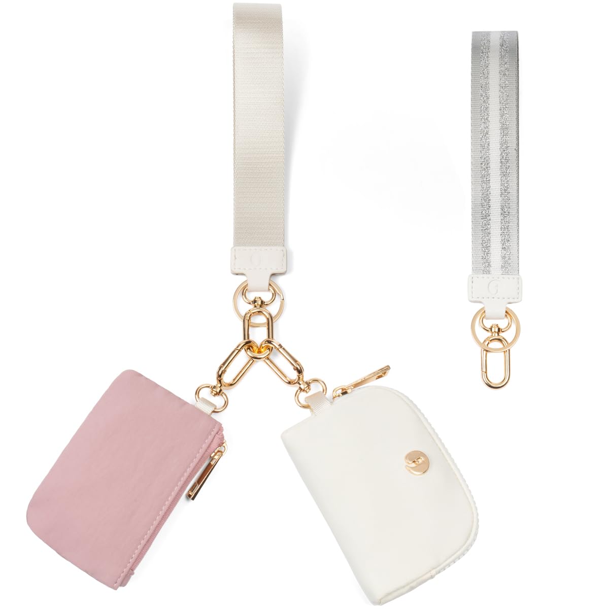 JEEBURYEE Dual Pouch Wristlet Keychain Wallet with 2 Pink+Ivory (Upgraded)
