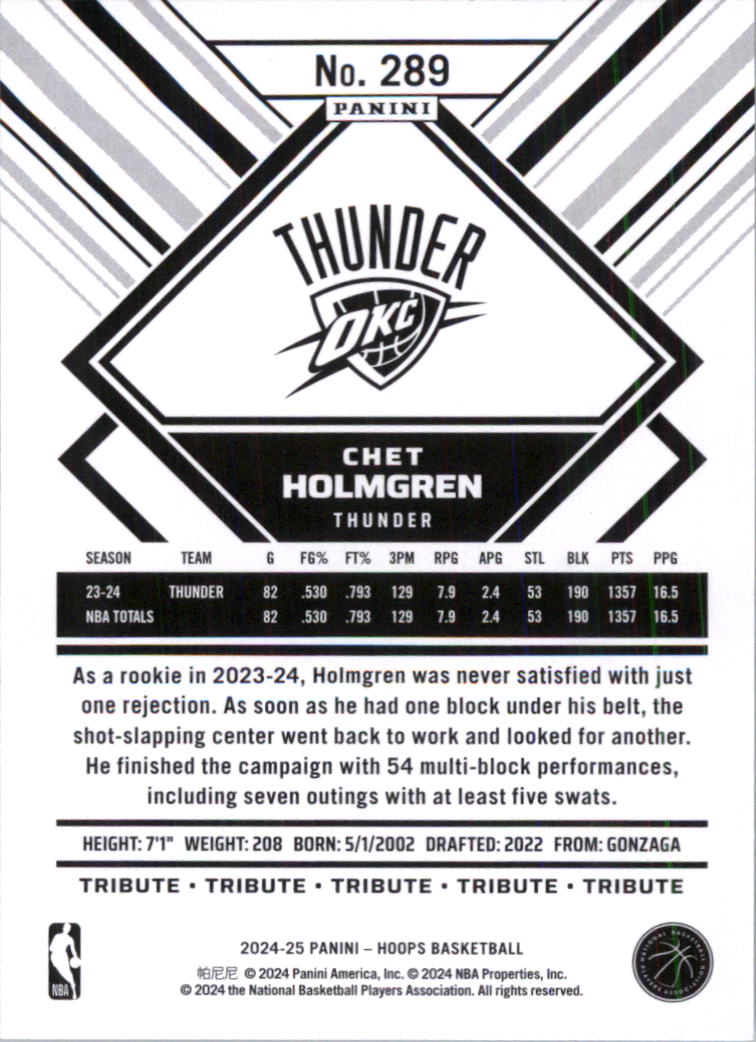 2024-25 Hoops #289 Chet Holmgren - BSK