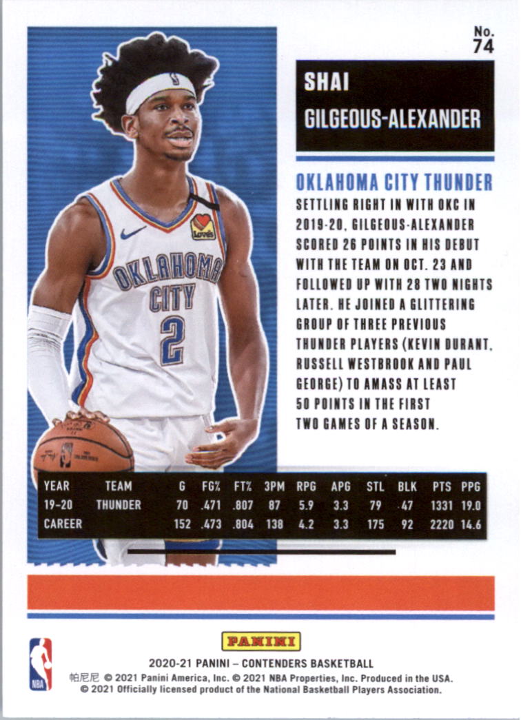 2020-21 Panini Contenders #74 Shai Gilgeous-Alexander - BSK