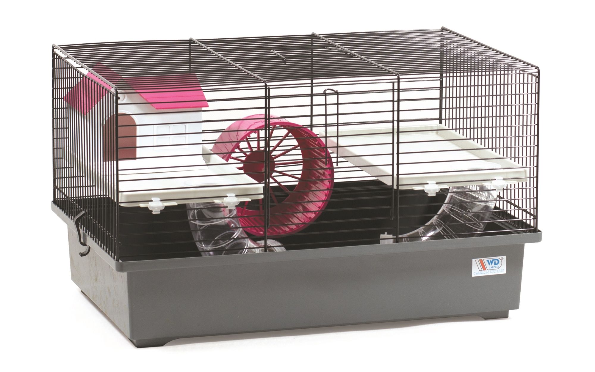 Der Käfig besticht durch sein funktionales Design und eine stabile Bauweise. Die tiefe Kunststoffwanne ermöglicht eine ausreichend hohe Einstreu zum Buddeln und sorgt gleichzeitig für eine saubere Umgebung rund um den Käfig. Über die praktische Tür an der Vorderseite (ca. 14 x 15 cm) haben Sie jederzeit bequemen Zugriff auf Ihre Tiere.