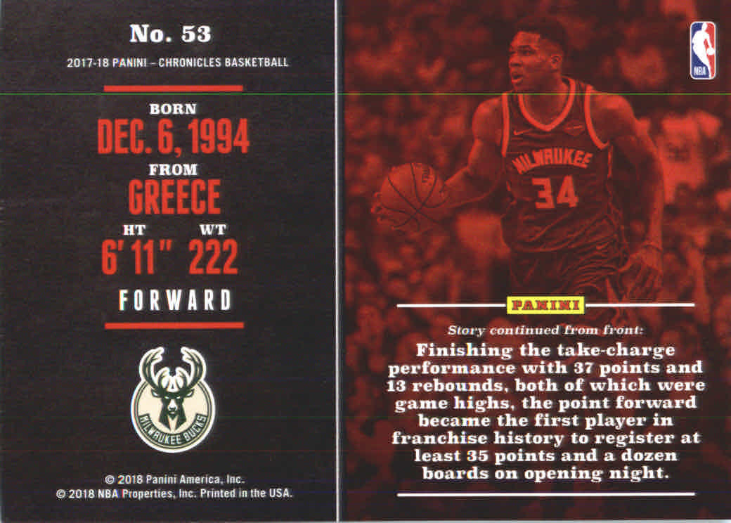 2017-18 Panini Chronicles #53 Giannis Antetokounmpo - BSK