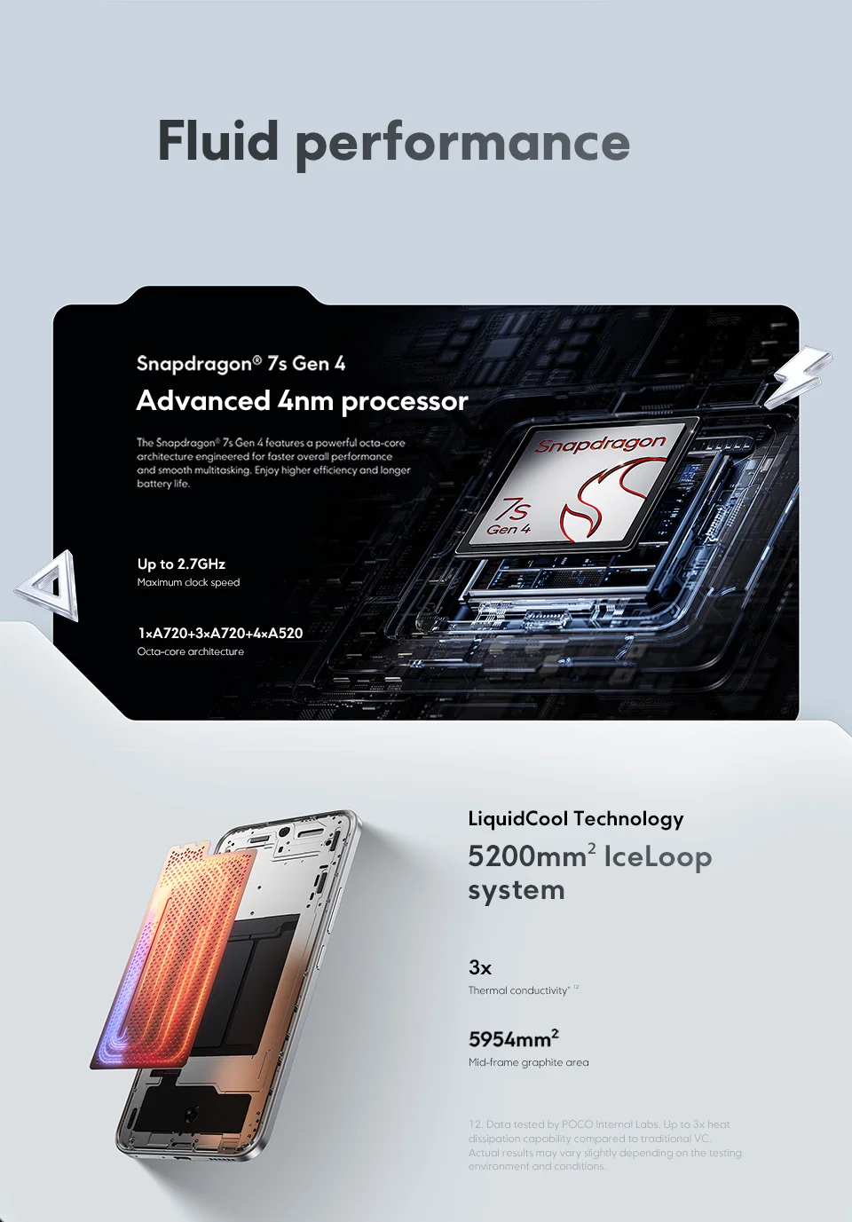 CPU ------------- Snapdragon® 7s Gen 4 Octa-core processor, up to 2.7GHz, Advanced 4nm 5G processor