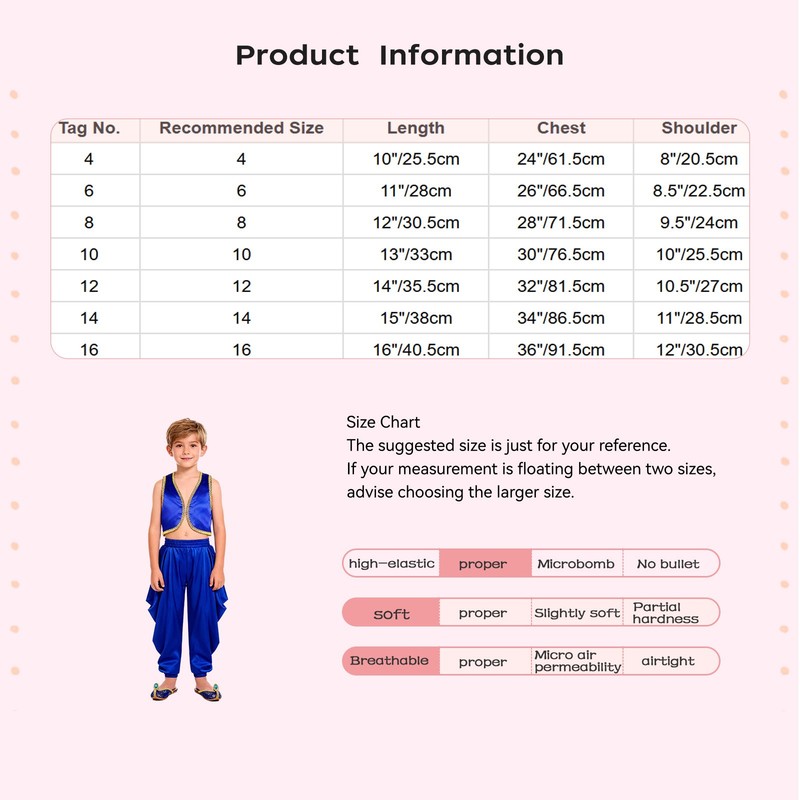 Ideal for cosplay parties, theme events, or as a unique addition to your child’s dress-up collection, it allows your child to immerse in the Arabian-themed role-playing experience.