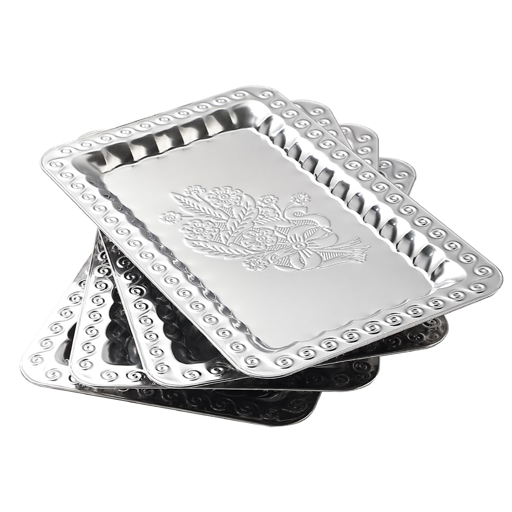 - PREMIUM STAINLESS STEEL SERVING TRAYS SET (4-PIECE) – Impress your guests with 4 sleek, mirror-finished trays made of durable food-grade stainless steel. Designed with a refined, lightweight profile for effortless serving and storage — sturdy enough for everyday use yet elegant enough for formal occasions. Each tray (13.8''×8.7''×0.5'') resists rust, stains, and odors while showcasing your food beautifully.