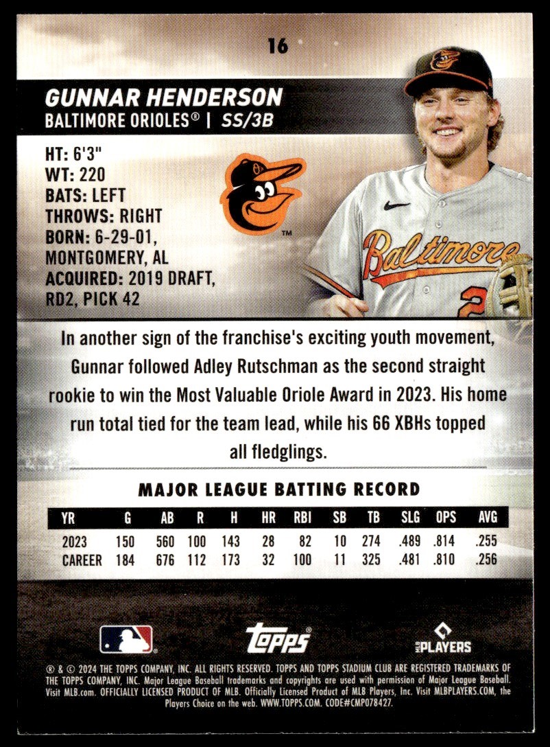 2024 Stadium Club Gunnar Henderson Baltimore Orioles #16