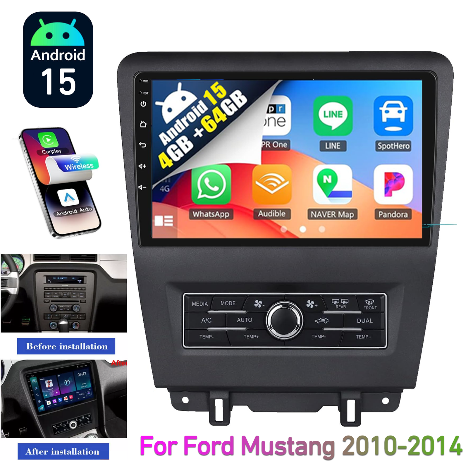 9” Android 15 Car Stereo | 4G+64G | 1280X800 | Wireless CarPlay & Android Auto | GPS | Bluetooth 5.4 | WiFi 6.0 | FM RDS | Plug & Play