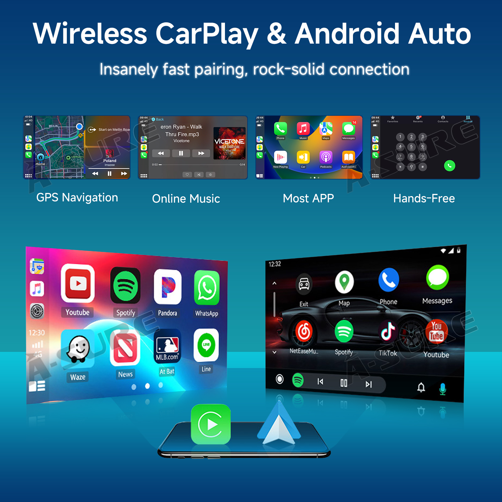 ✅ Wireless CarPlay & Android Auto – Maps, music, YouTube, voice control