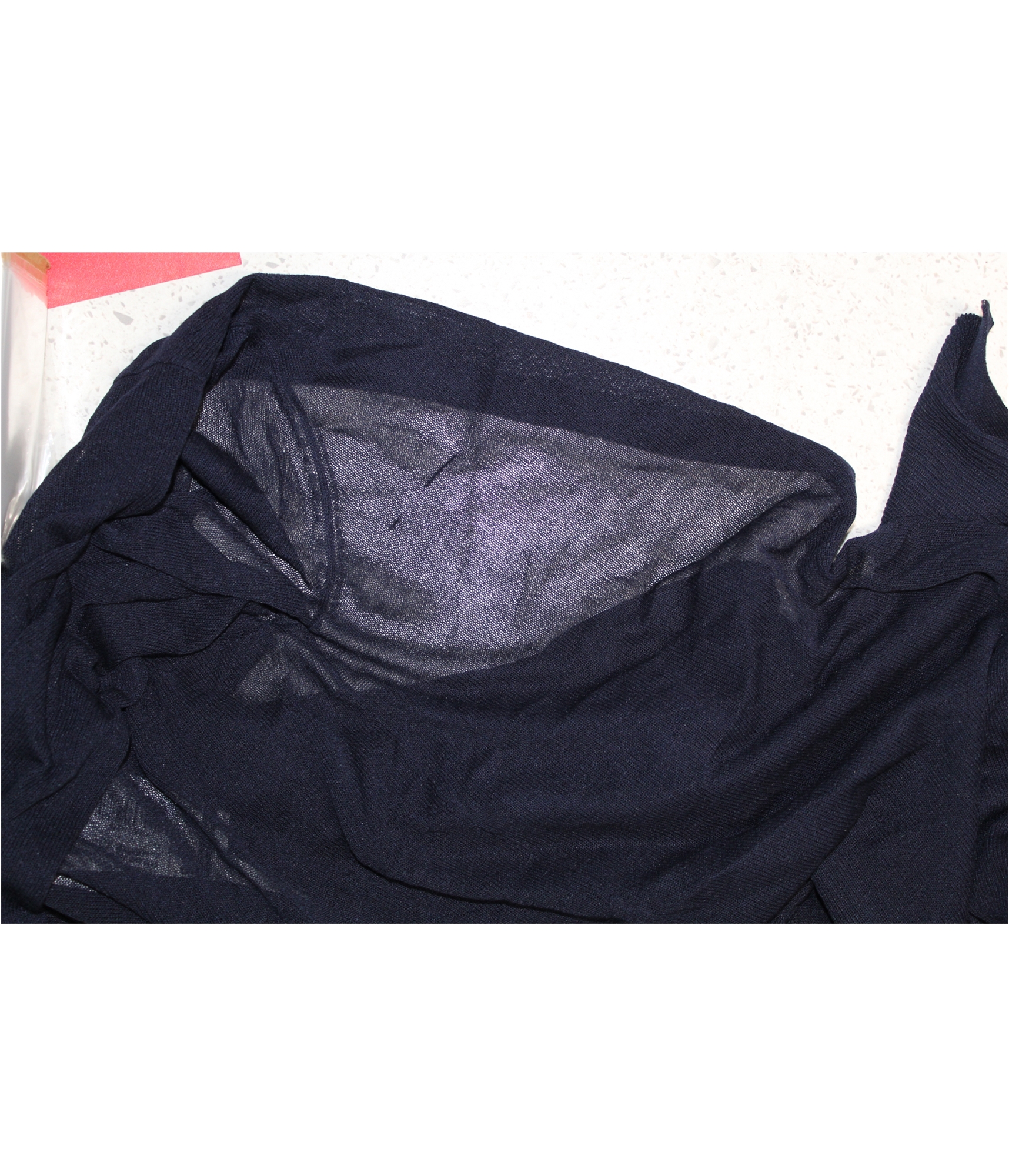May need to be washed or dry-cleaned before wearing due to handling or trying on in department stores. Examples: makeup/deodorant marks.