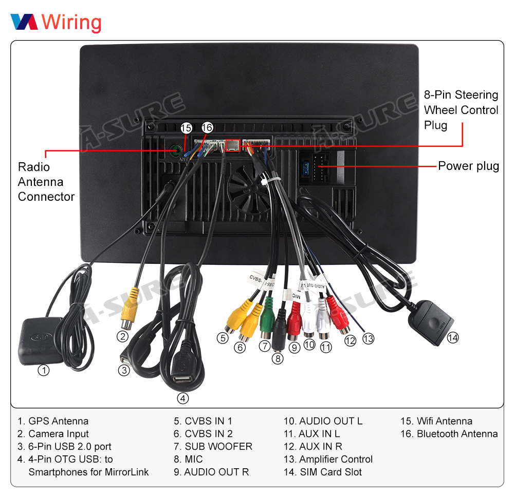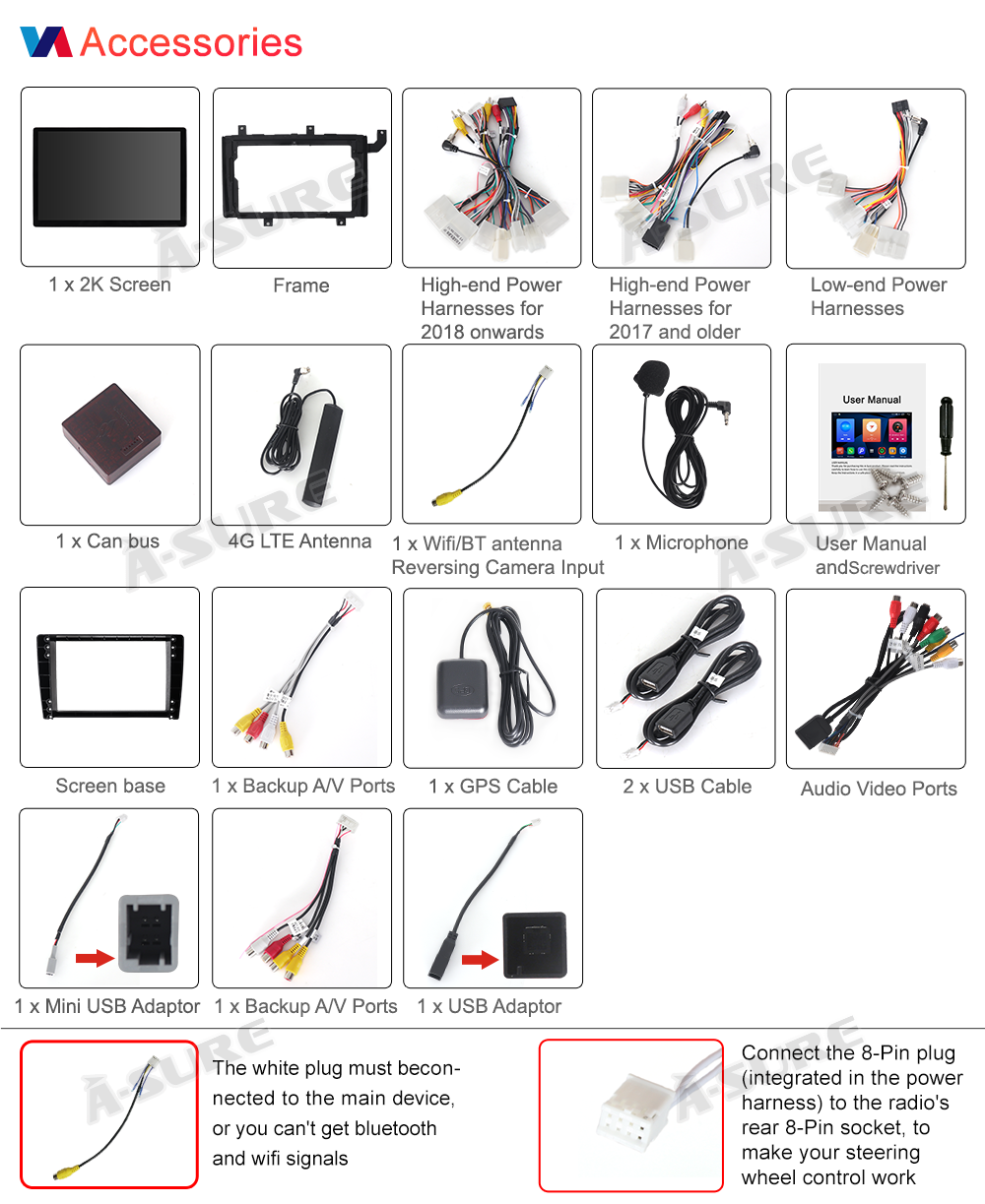 Steering wheel control compatible (If equipped with a CANBUS decoder box, connect and set the correct CANBUS path up for immediate use. If not, connect the SWC cable and configure via the SWC APP.).