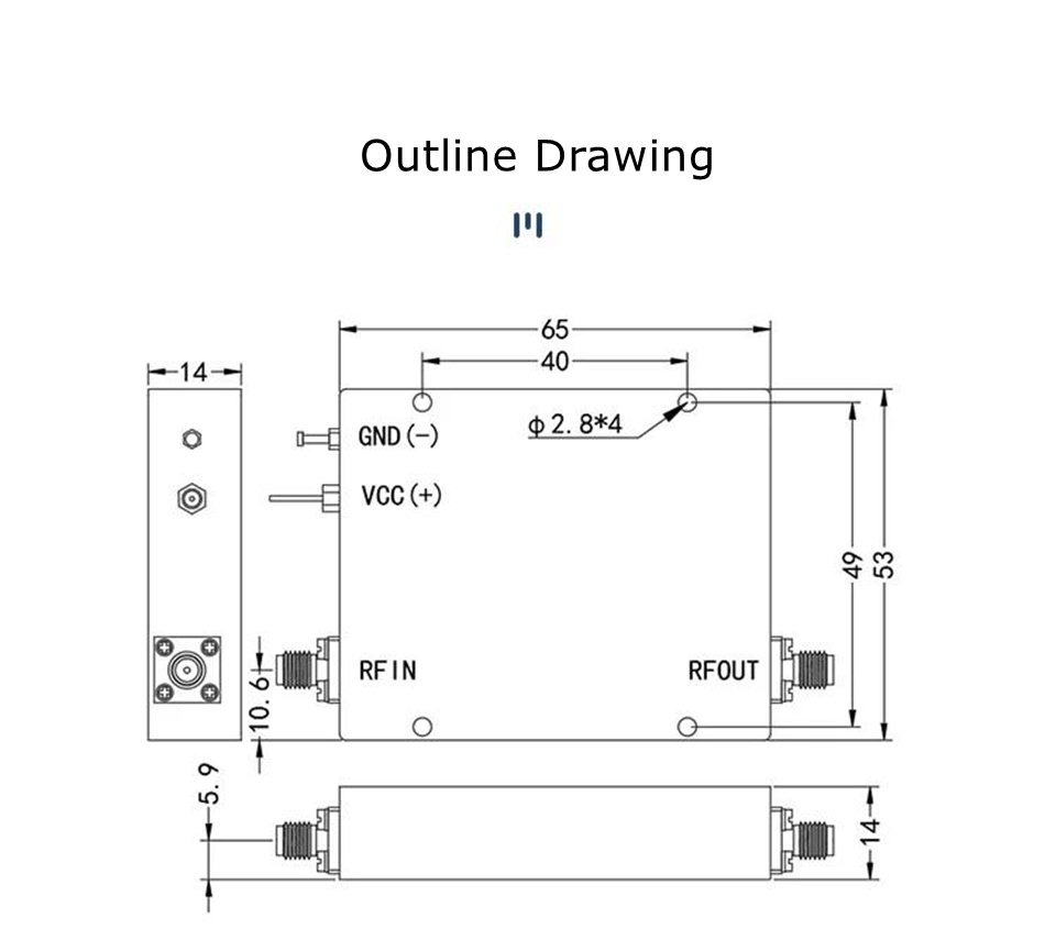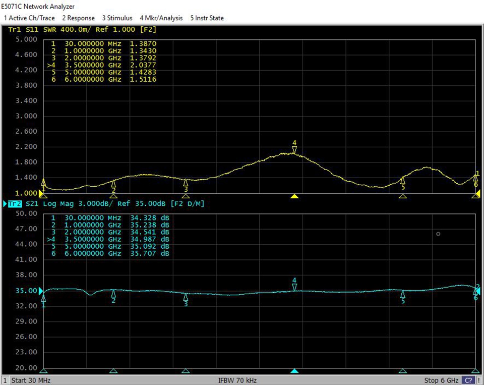 0.03-6GHz RF Power Amplifier 35dB High Gain 2W Output RF Microwave PA with SMA Female Connector