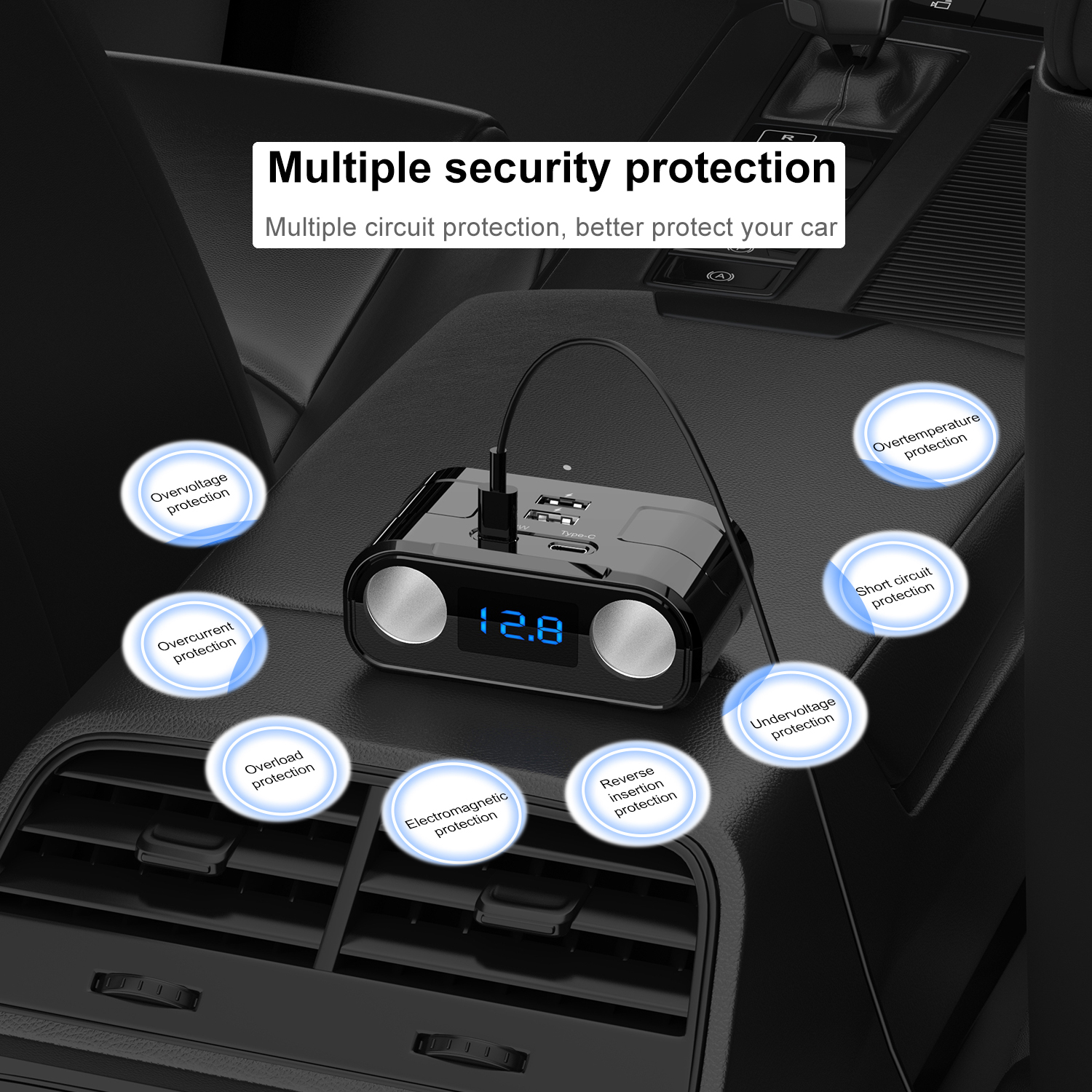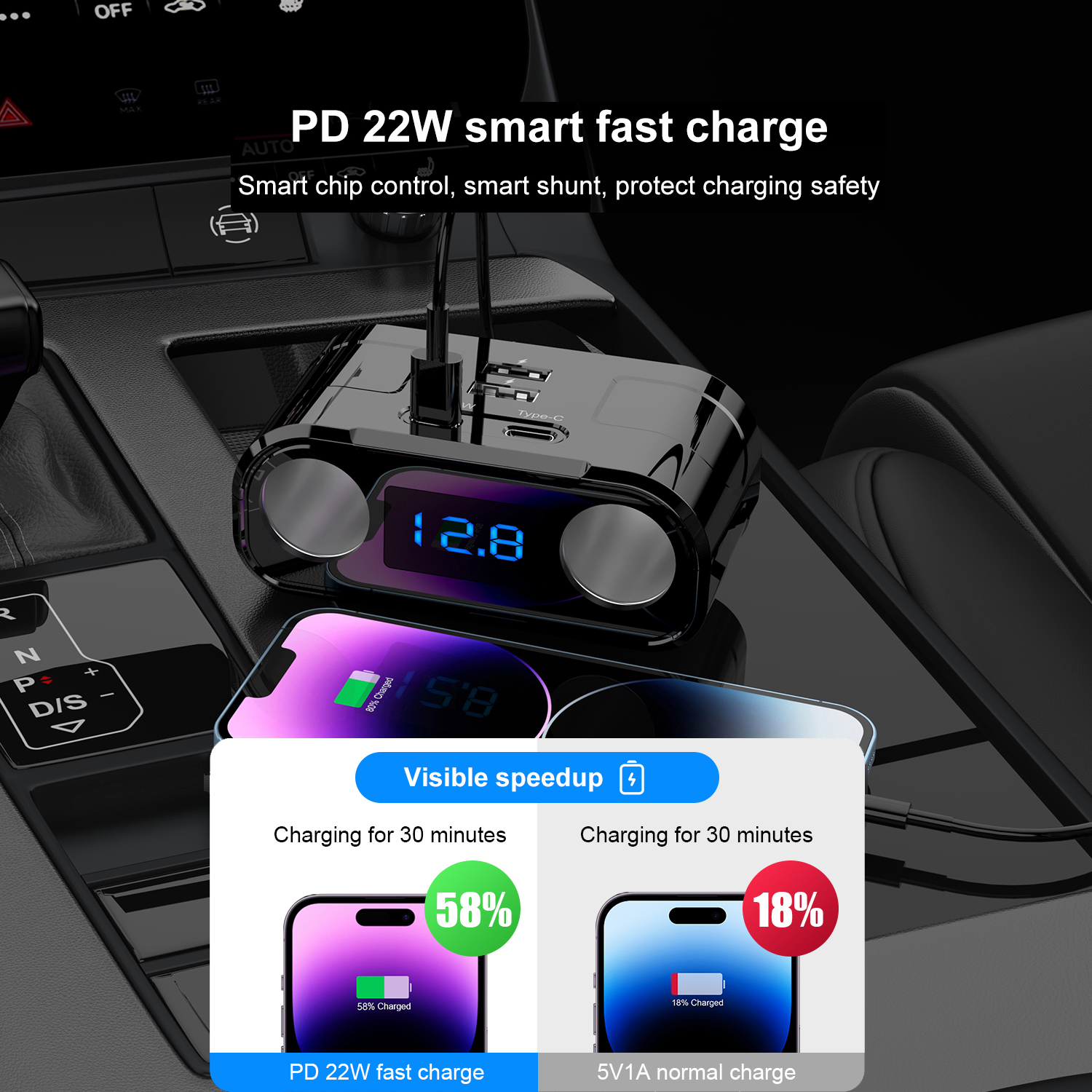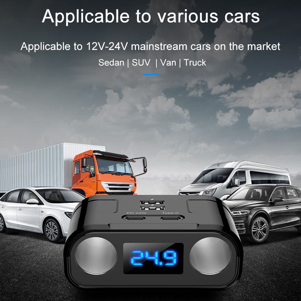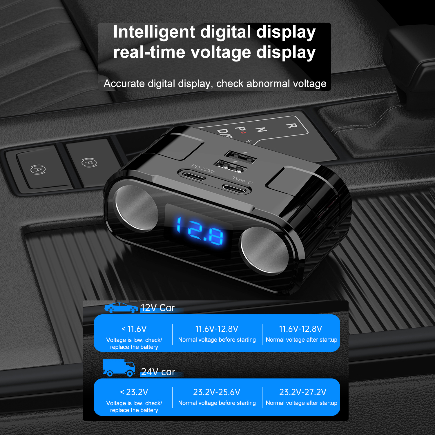 Adaptateur séparateur allume-cigare de voiture L12C 12V 24V, avec 2x USB 2x type-c PD, chargeur rapide pour voiture et camion avec affichage LED |