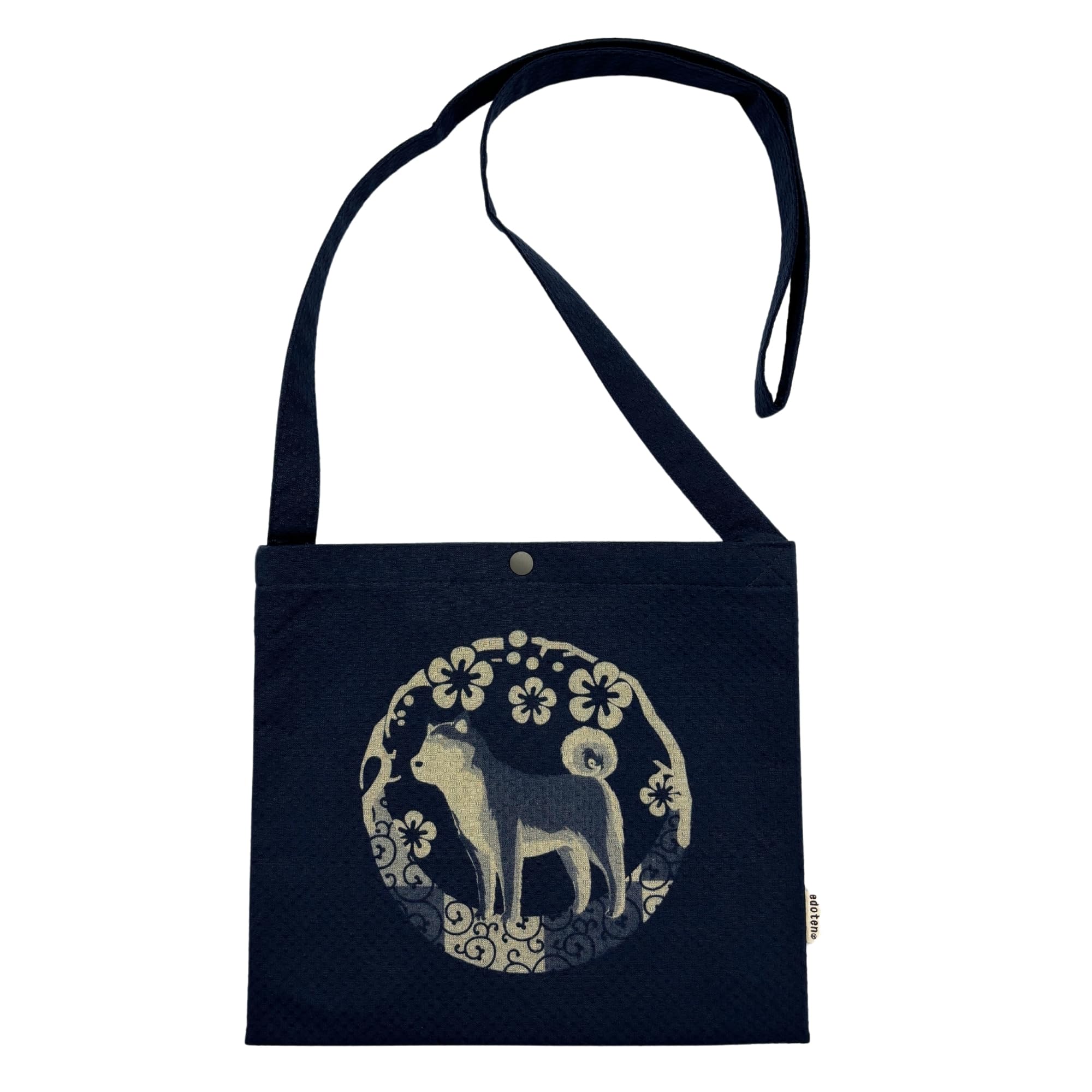 Edoten Sashiko Sacoche: Shiba Inu Dog Navy Discharge Print Shoulder Bag