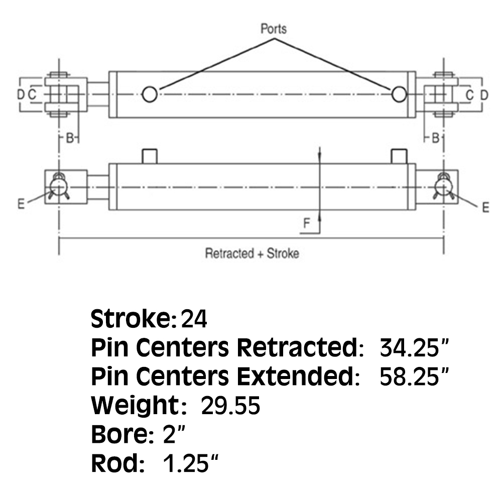2500 and 3000 PSI Double Acting Cylinders (4 in. Bore= 3000 PSI, 5 in. Bore= 2500 PSI)