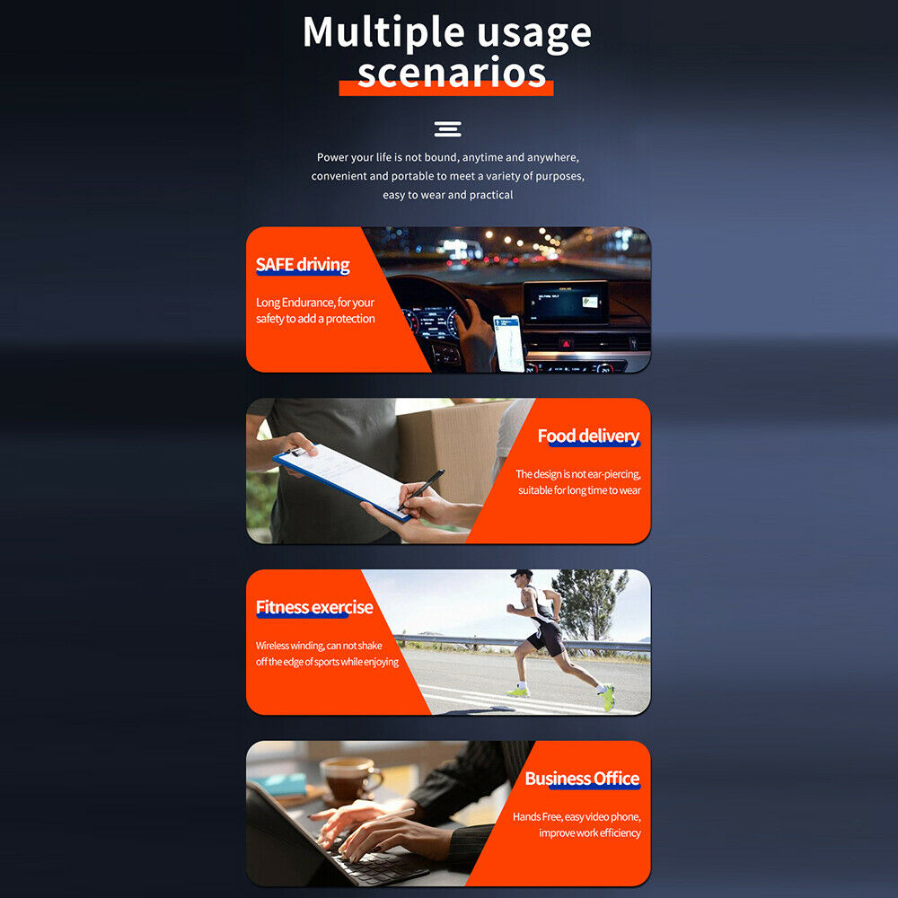 The headset could be used to answer/reject calling, skip/play/pause songs, and activate voice assistant, such as for Siri and for android voice assistant. With intelligent voice reminder, helping you to know the real-time status of your headset.