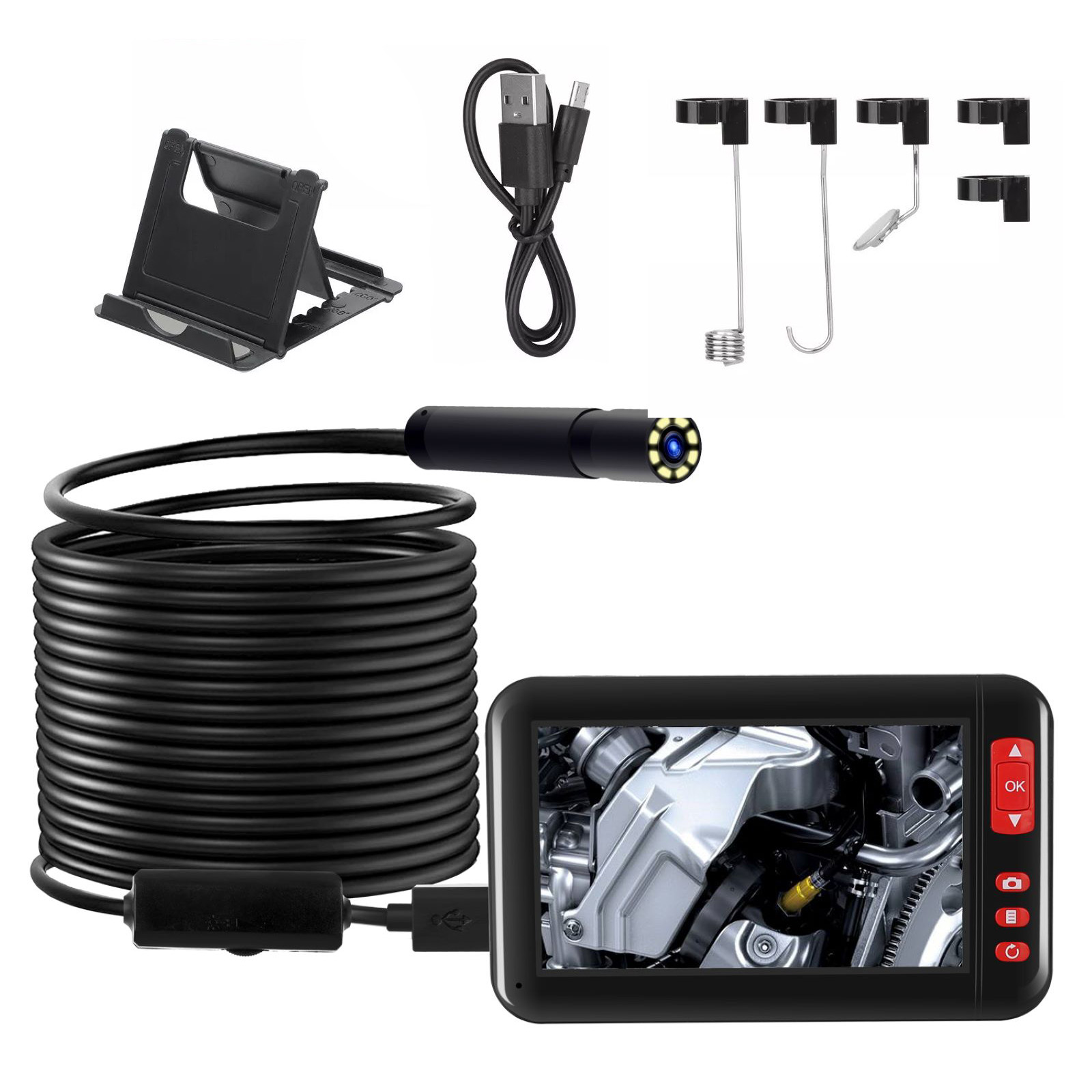 Flexible Cable: The waterproof flexible cable, paired with an 8mm tiny camera head, can pass through tight spaces and reach other hard-to-reach areas, making it easier to inspect inside cylinders, automotive engines, behind walls, in vents, pipelines, plumbing, sewers, drains, etc.