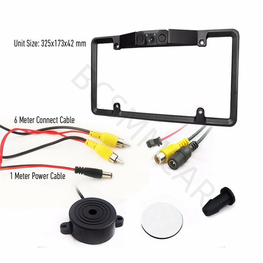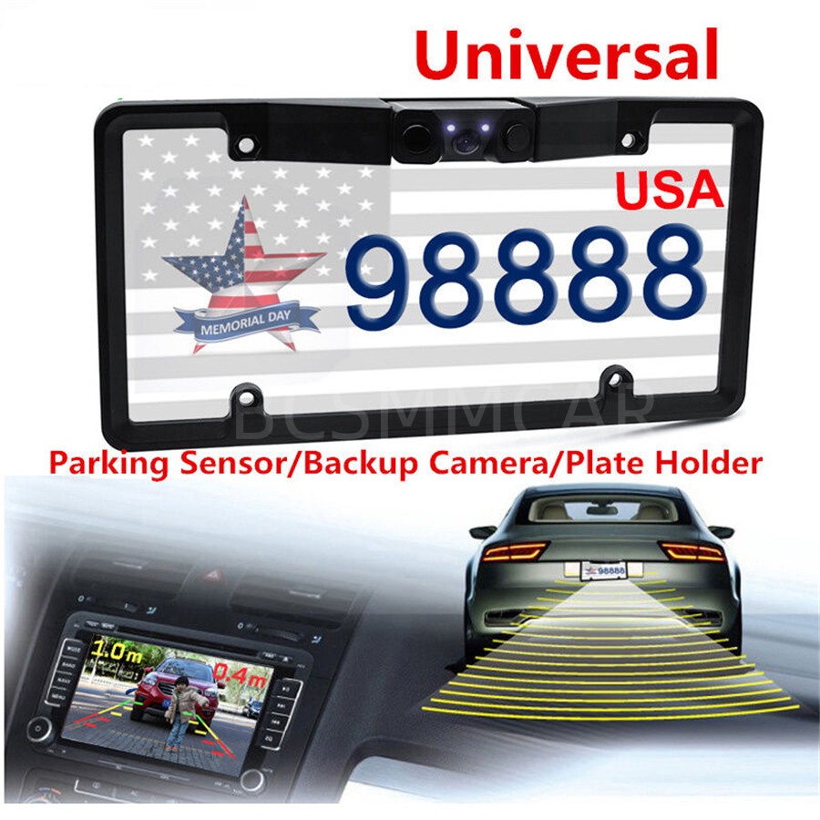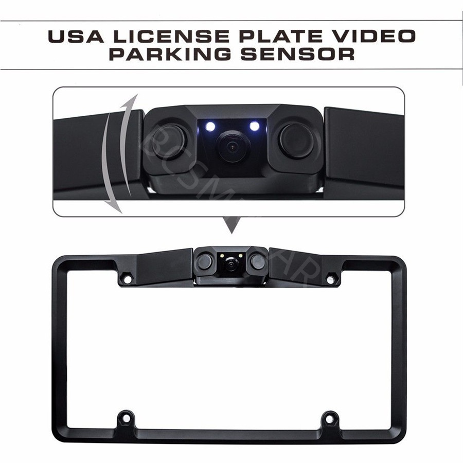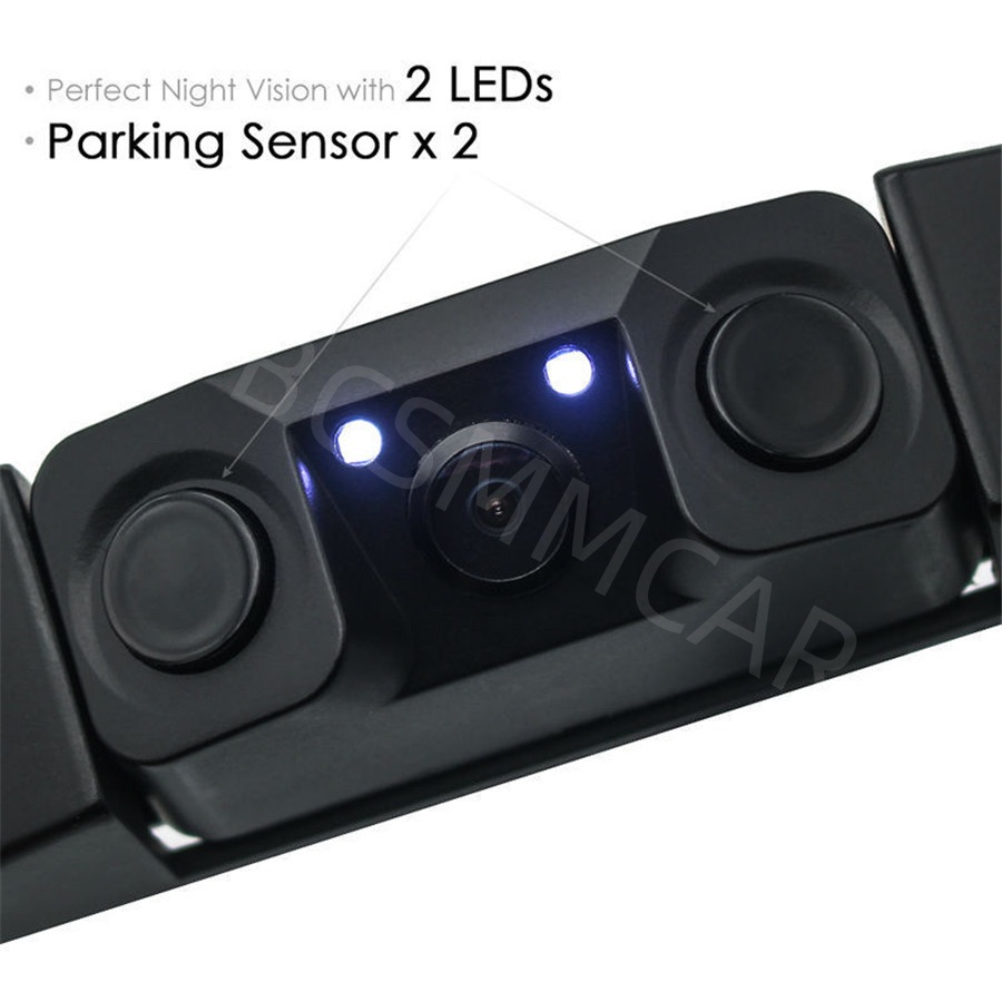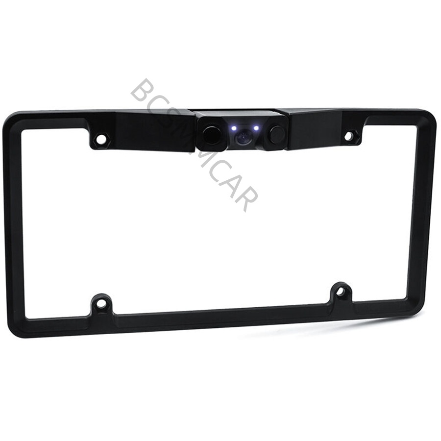 Multifunctional 2LED Car License Plate Frame Parking Sensor Radar Rearview Reverse Backup Camera Supports 120 Degree Wide Angle
