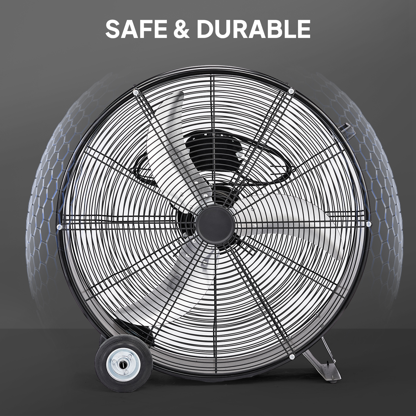 【Premium Heavy-Duty Motor for Reliable Performance】Built to last, this heavy-duty drum fan is powered by a high-quality copper-wire motor, ensuring stable, long-lasting operation even under heavy use. UL-certified for safety and durability, its all-metal construction enhances sturdiness while delivering smooth, high-speed airflow—perfect for demanding environments
