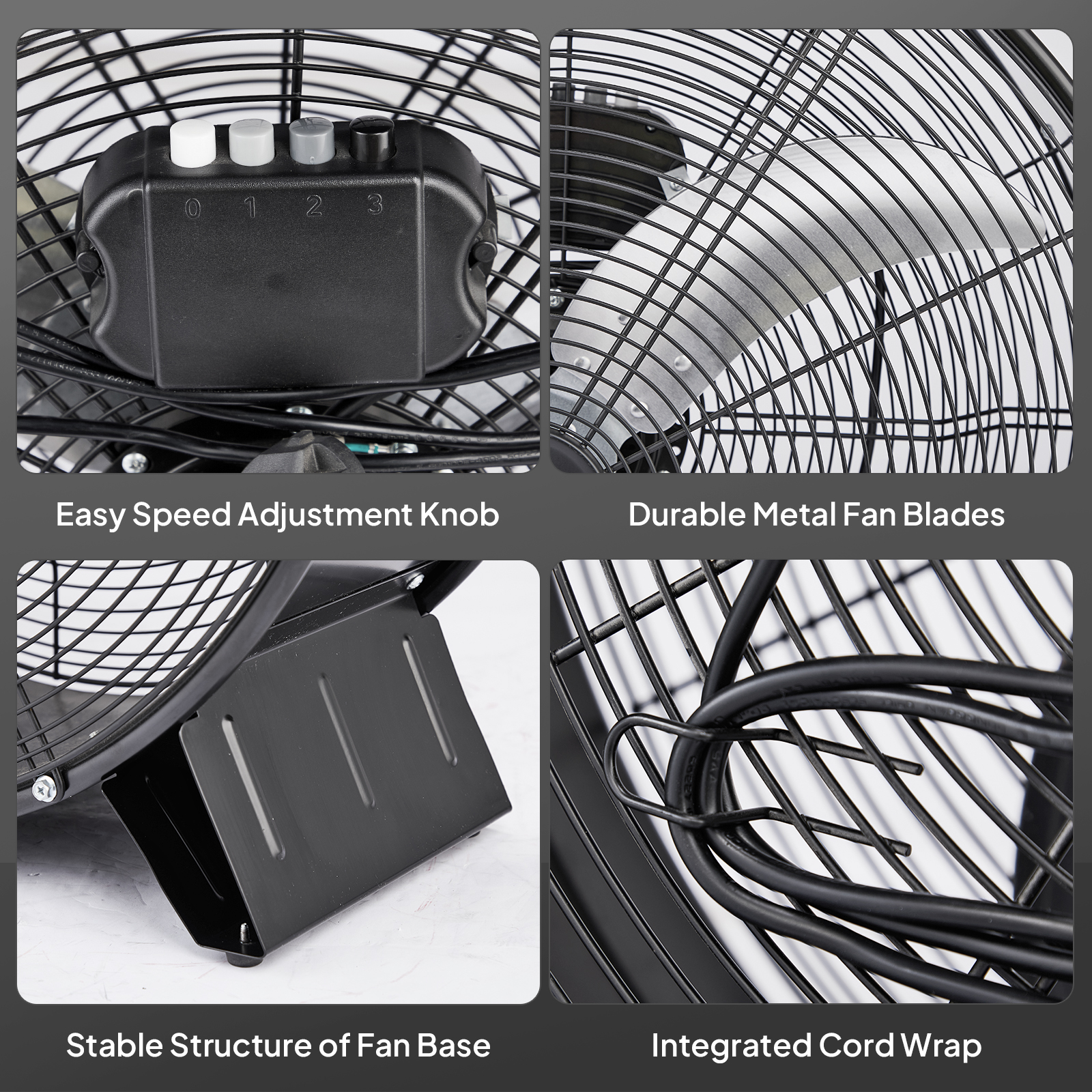 【User-friendly Design】This 24 inch industrial fan is equipped with a easy speed adjustment knob. The stable structure of fan base provides good anti-slip performance and grip, so that even when this large fan is running at high speed, it can still stand firmly, providing you with a safe and reliable experience
