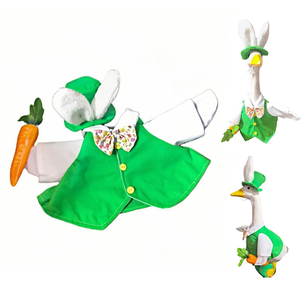 5. 【Complete Costume Set】: The package includes 1 set of the duck/geese costume (including the bunny - ear hat, green vest, patterned bow - tie, and carrot prop), so you don't need to purchase additional accessories for dressing up your duck/geese.