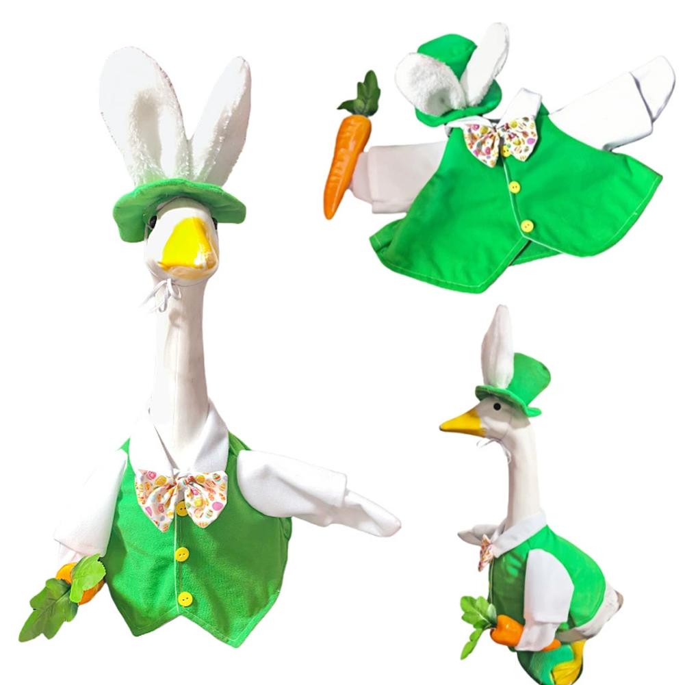 2. 【Cute Easter - Themed Design】: With a bunny - ear hat, a vivid carrot prop, and a patterned bow - tie, this costume adds a playful and festive vibe, making it perfect for Easter decorations or home decor to make your duck/geese stand out.
