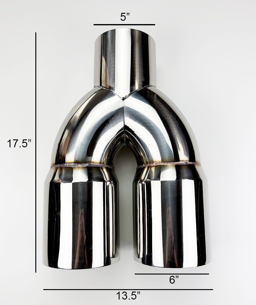 Dual Walled Flat Cut Equal Length 6" Stainless Steel Exhaust Dual Tips w/ 5.0" Inlet