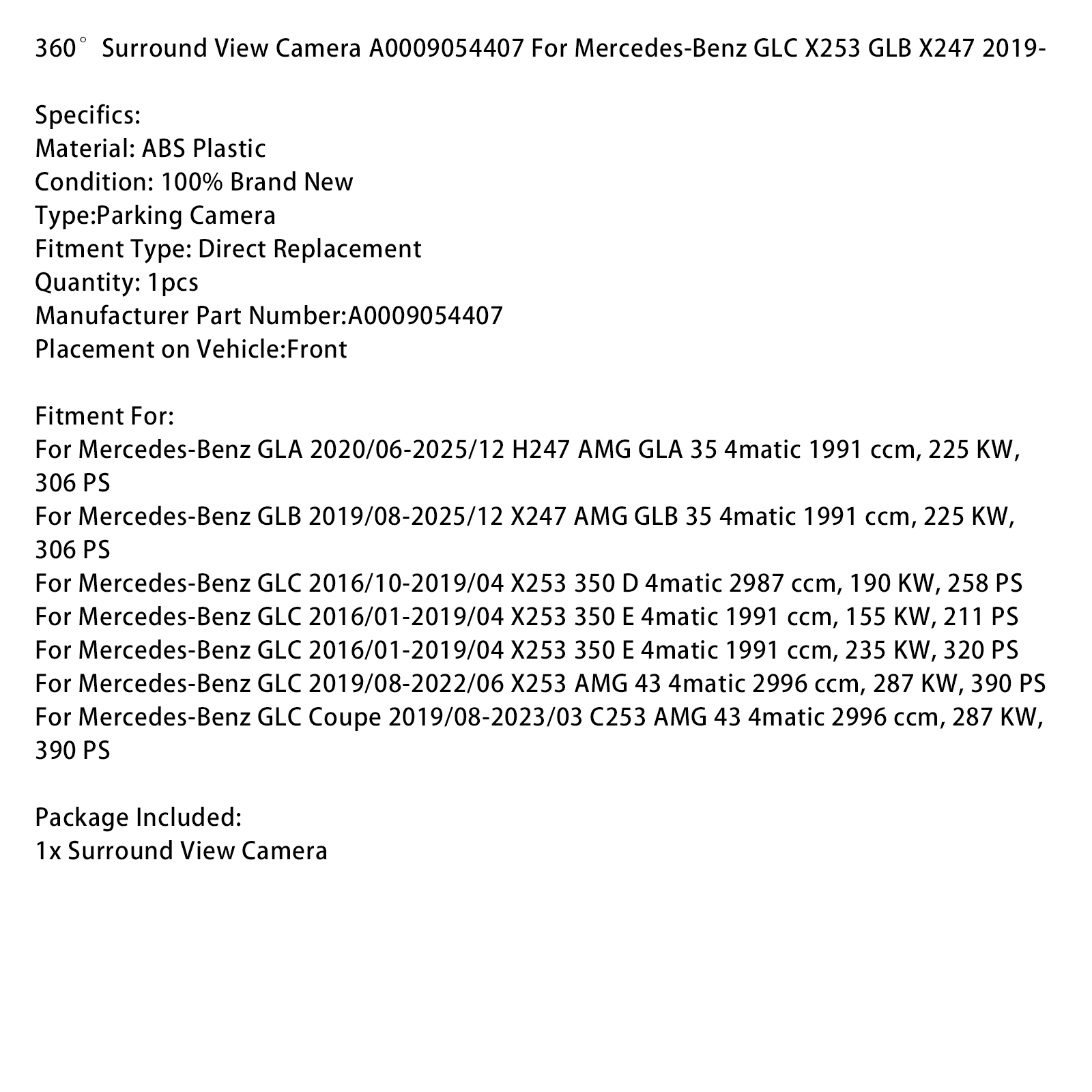 360°Surround View Camera A0009054407 For Mercedes-Benz GLC X253 GLB X247 2019-