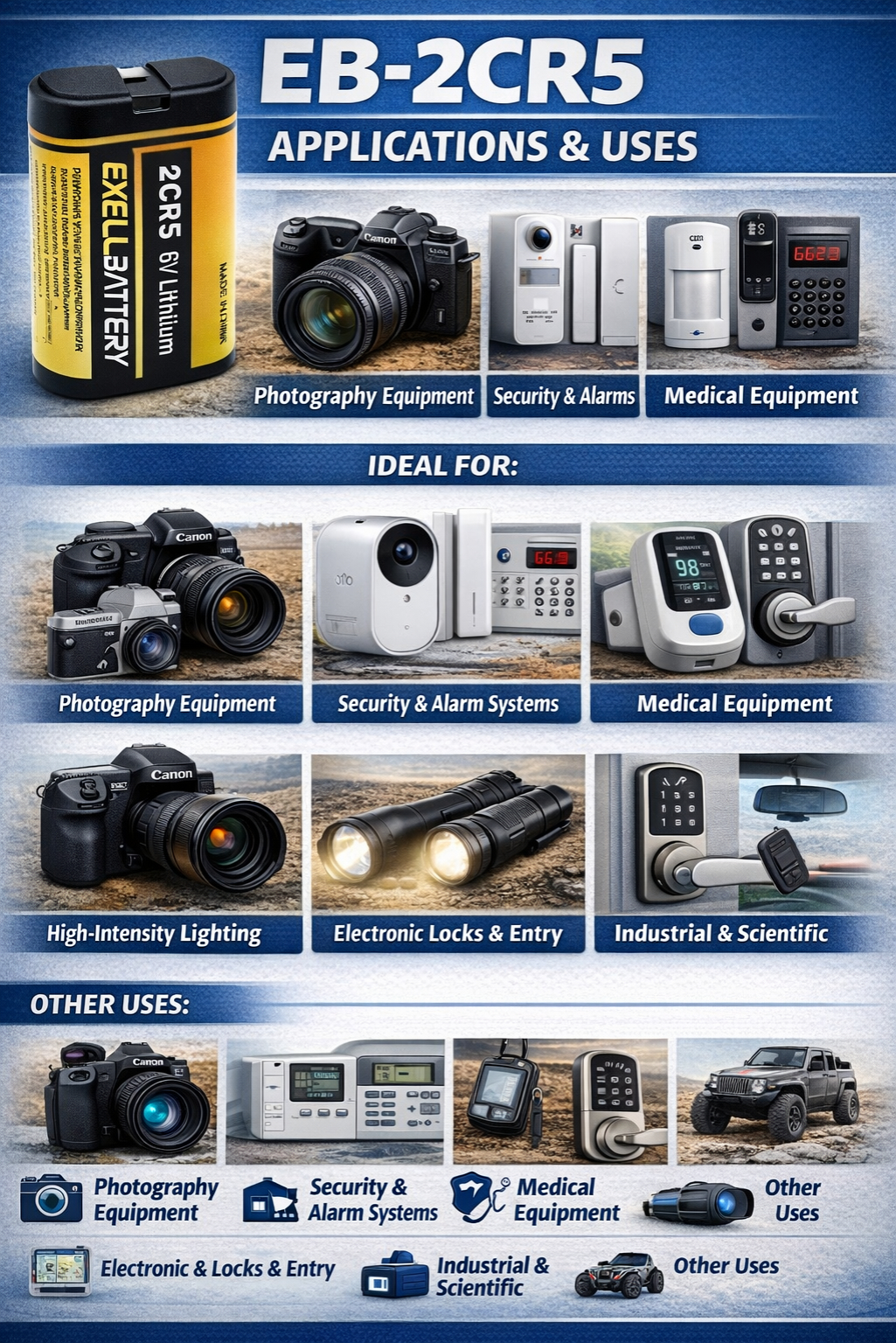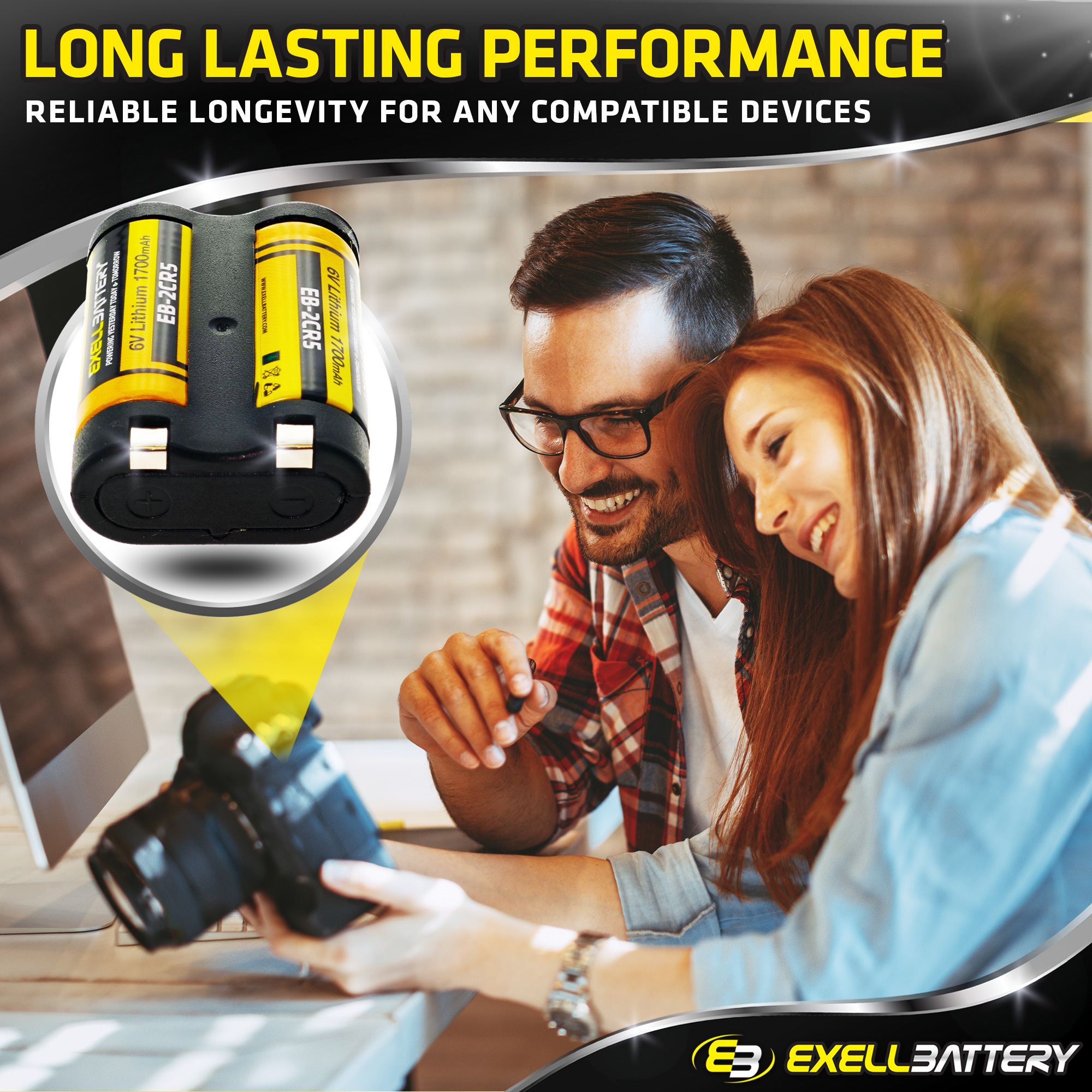 The Exell EB-2CR5 combines high-capacity 1700mAh performance, stable 6V lithium power, and broad compatibility in one premium battery. With longer runtime than many standard 2CR5 alternatives, fast recycle capability, and dependable long-term storage, it is an excellent choice for cameras, light meters, security devices, and specialty electronics.