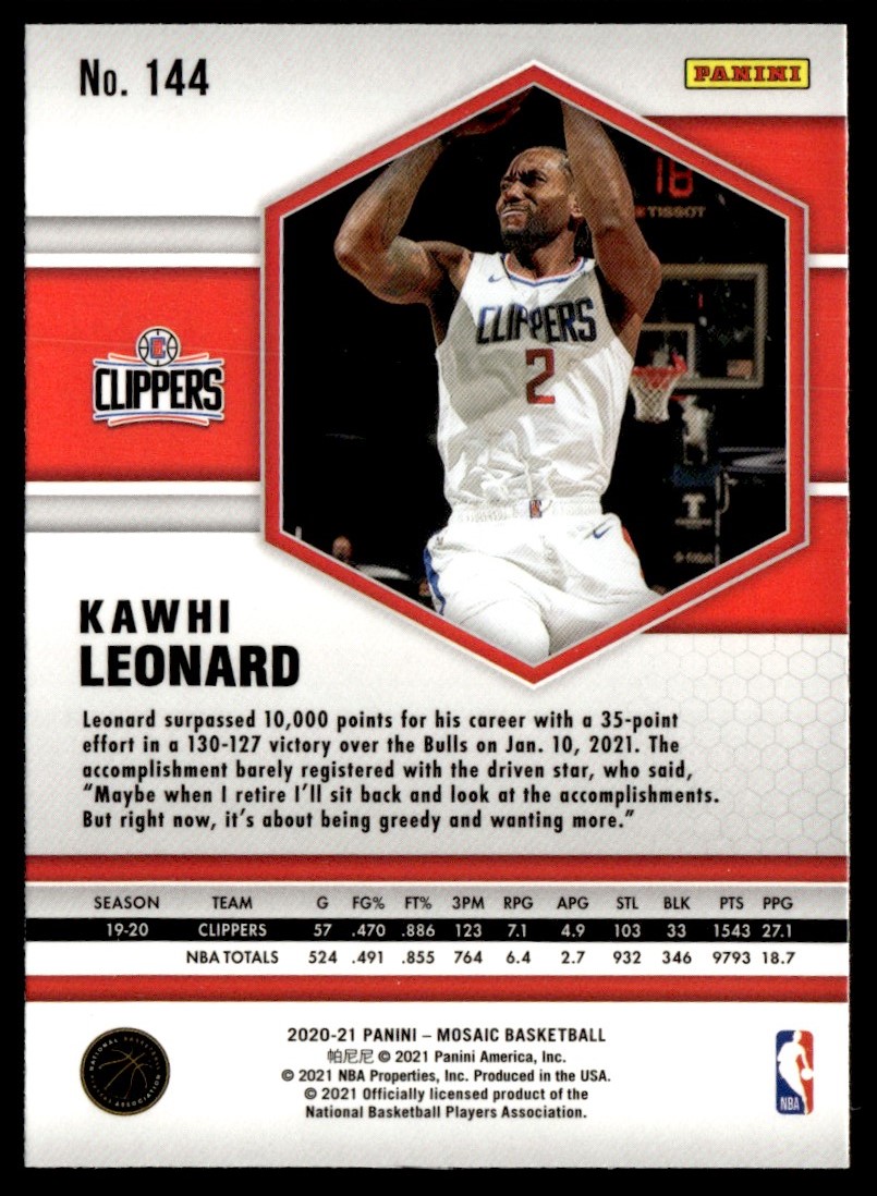 2020-21 Panini Mosaic Kawhi Leonard Los Angeles Clippers #144