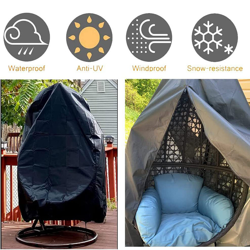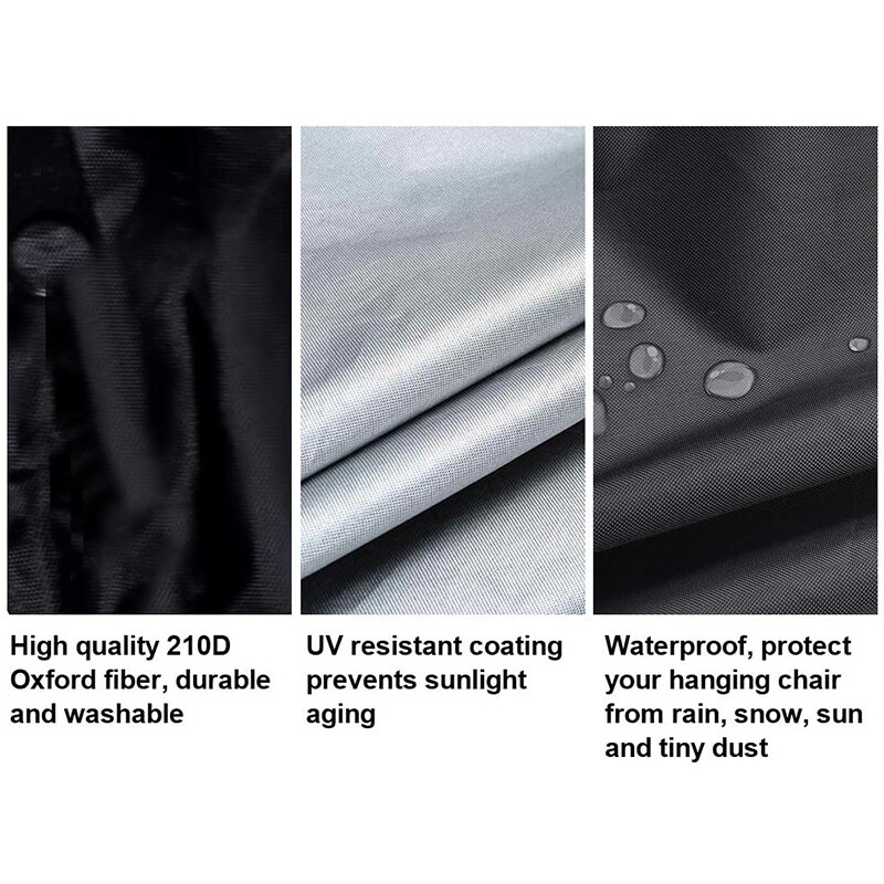 【Waterproof Protection】The hanging chair cover is made of amazing hydrophobic material and uses the double stitched seams, the inner layer has a new upgrade PVC coating, which can prevent the penetration of water from the surface. The outdoor hanging chair covers waterproof keep your furniture set dry and ready to use.