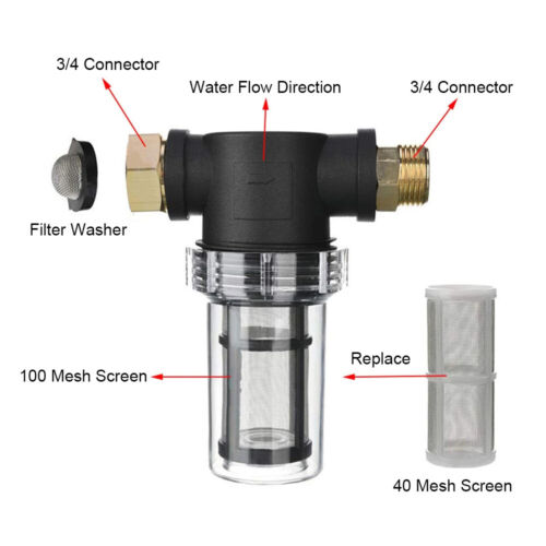 The pre-filter is made of impact-resistant plastic and is fully equipped with a washable filter insert to protect against sand and solids.
