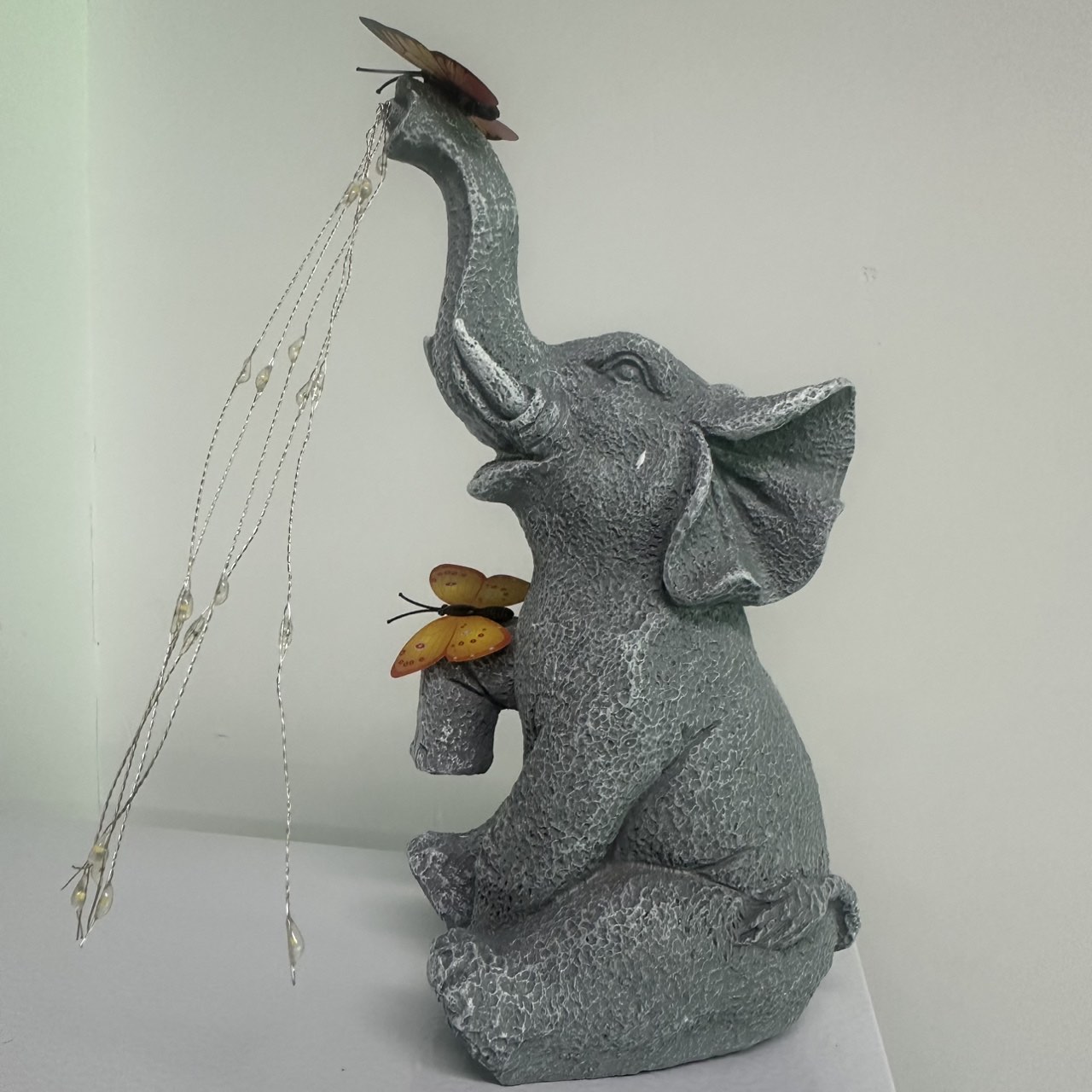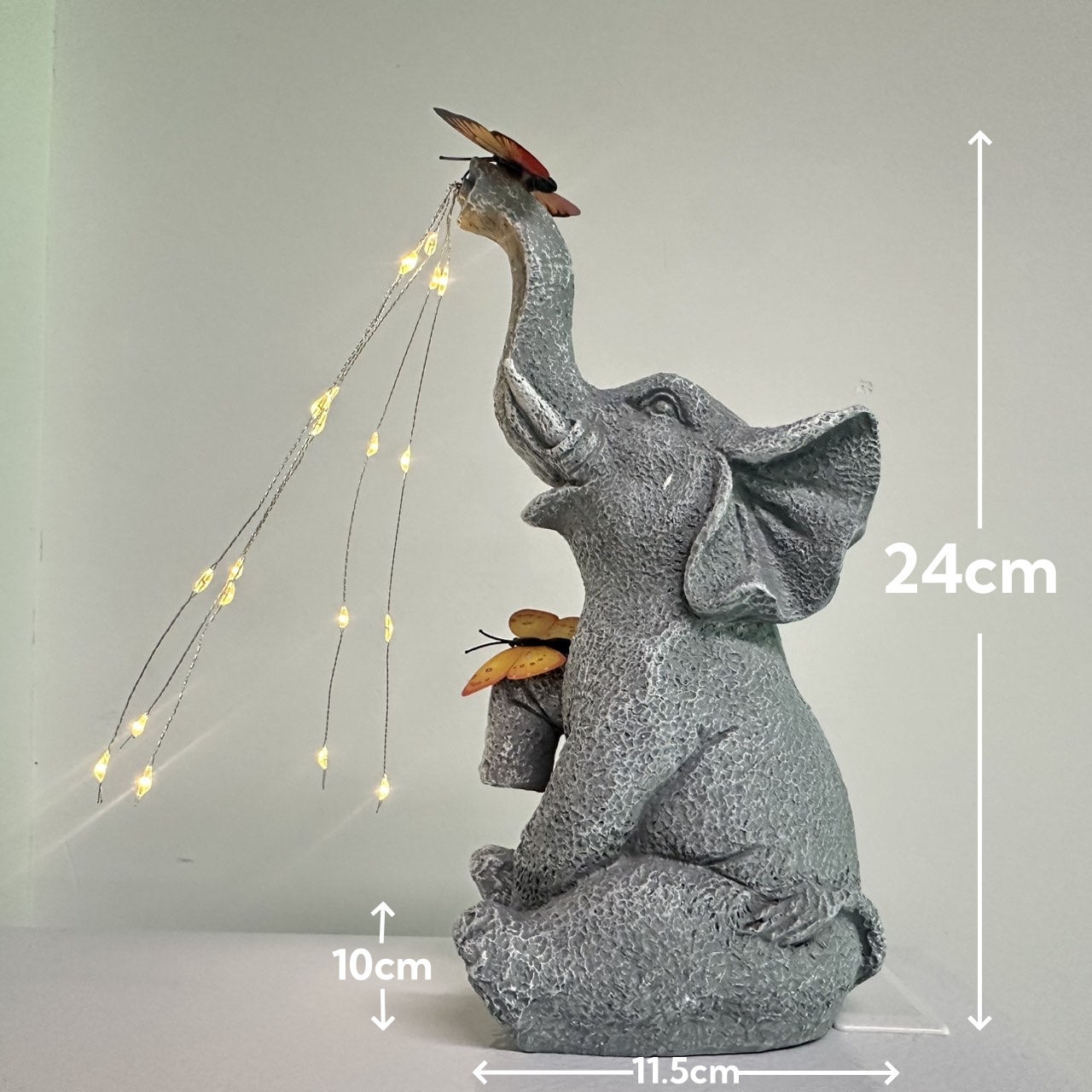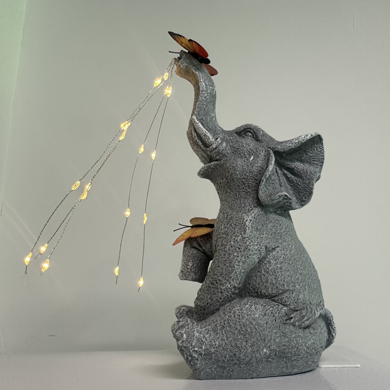 3. Solar lighting: Powered by solar panels, the elephant statue charges during the day and automatically lights up at night. It is equipped with high-quality solar cells that absorb sunlight, providing decorative lighting during the day and soft ambient light at night.