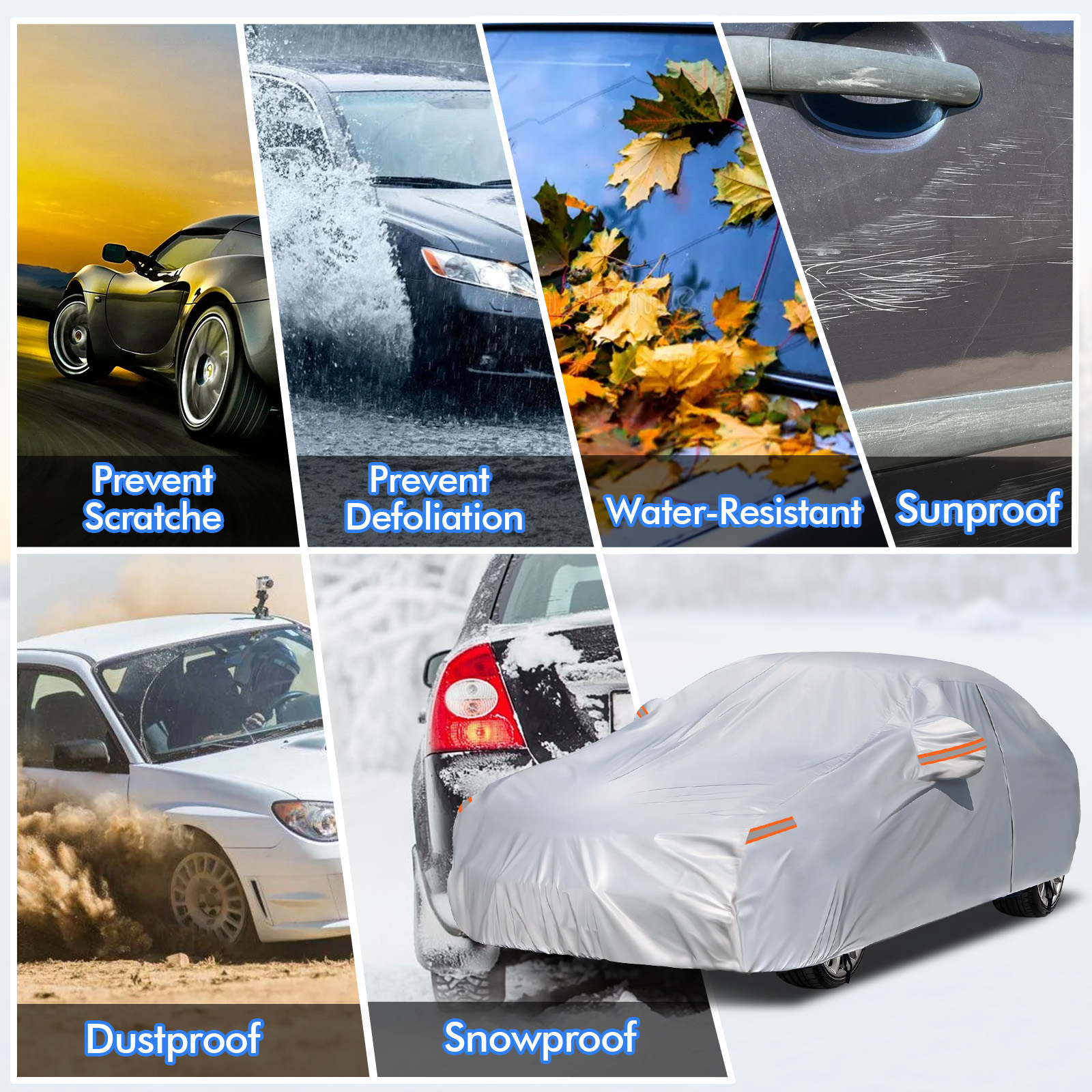 【What You Get】 1pcs car cover, 1pcs storage bag. We stand behind our products and service, if you have any problems, please contact us anytime, we will provide you with a satisfactory solution!
