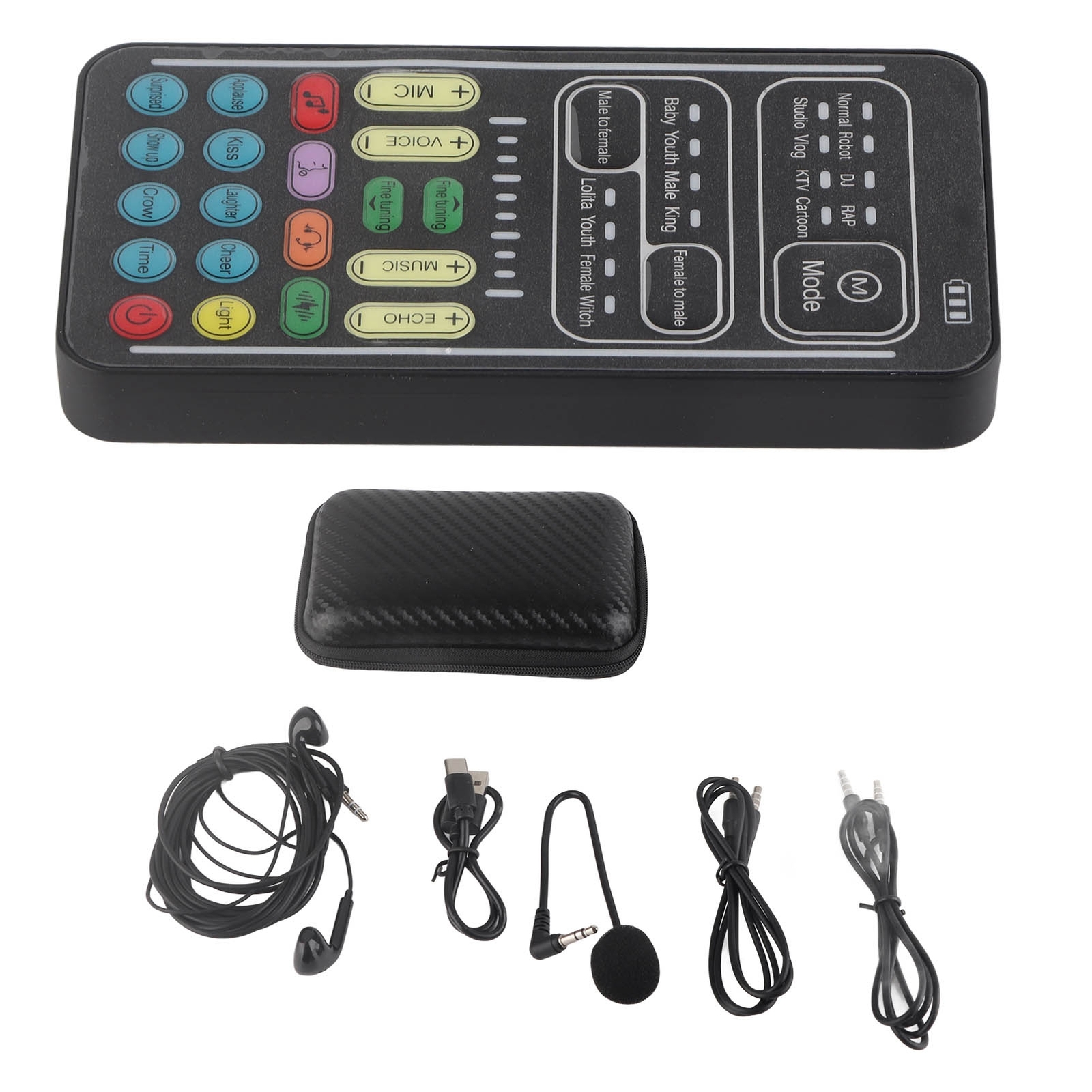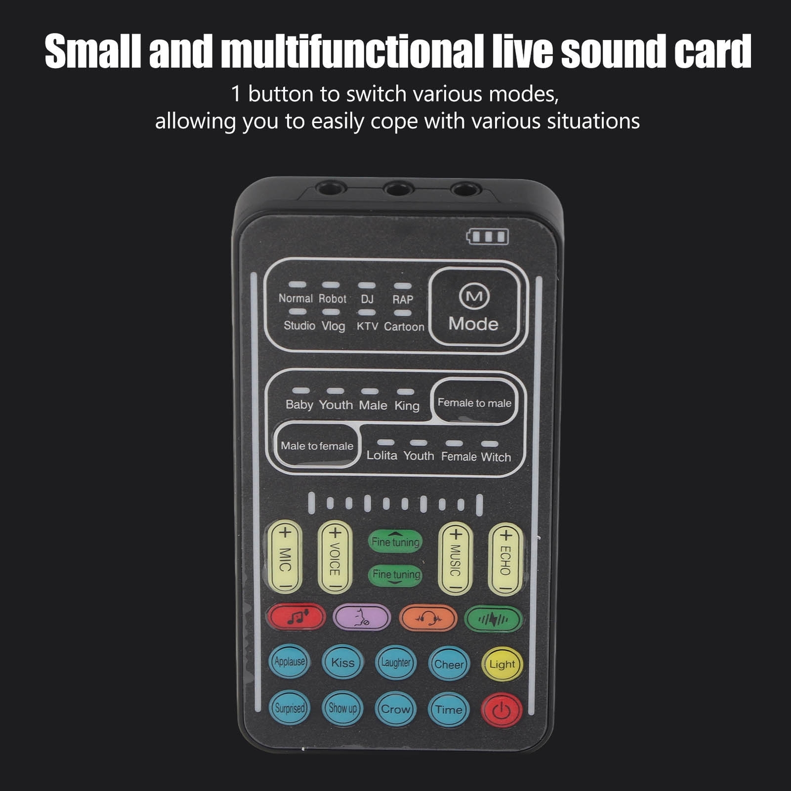 1、8 Different Sounds: This handheld voice changer has 8 different voice changes, male to female, female to male, normal, lolita, baby, youth, king, witch. You can also use the fine tuning button to adjust each sound for more different sounds. 2、8 Built In Sound Effects: The sound card comes with 8 interesting sound effects, you can get interesting sound effects just by pressing the button of each sound effect. The eight sound effects are applause, kiss, laughter, cheerful, surprise, fright, crow, and times. The voice changer uses LED lights, which are very cool, and the lights have a separate button control to turn off. 3、Portable: This sound card is very small, easy to carry, plug and play, also very easy to use, and there is no need to install any drivers, just connect this sound converter to other devices and your sound will change to the way you want. 4、Giving a Surprise: This voice changer can make your life more interesting. You can connect it to your phone or other applicable equipment to disguise your voice when you're talking to others. You can even play different characters in the game to surprise your friends. 5、High Device Compatibility: This sound device can be used on any mobile phone, computer, tablet, for Switch, for iOS system, for Android mobile system and any gaming platform. When using the voice charger with a PC, you need an adapter. The interface of this voice changer is 3.5mm, and the for iOS system needs to purchase an interface conversion cable to use it.