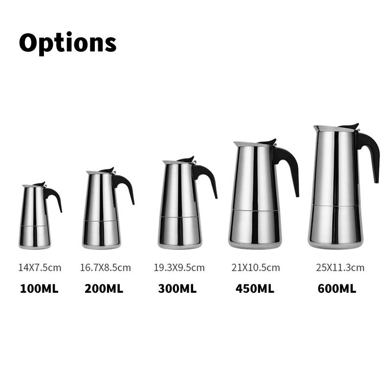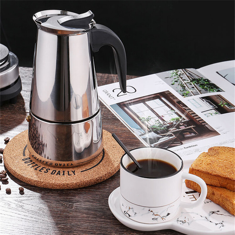 1.This coffee maker is made of superior stainless steel material, easy to clean