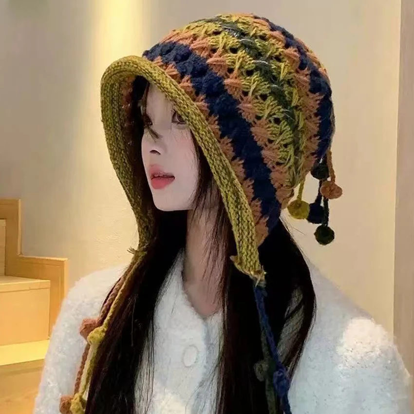 Finished with a playful pom-pom tassel for a charming and youthful look.