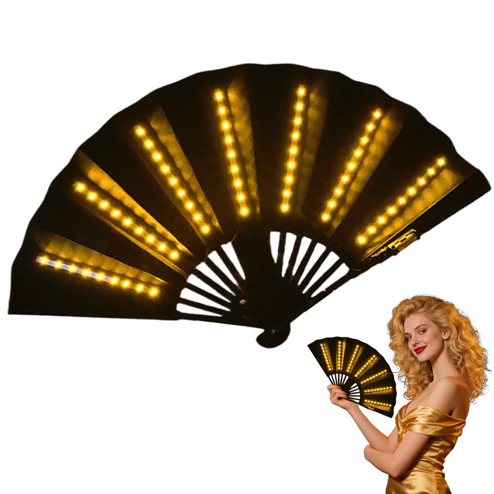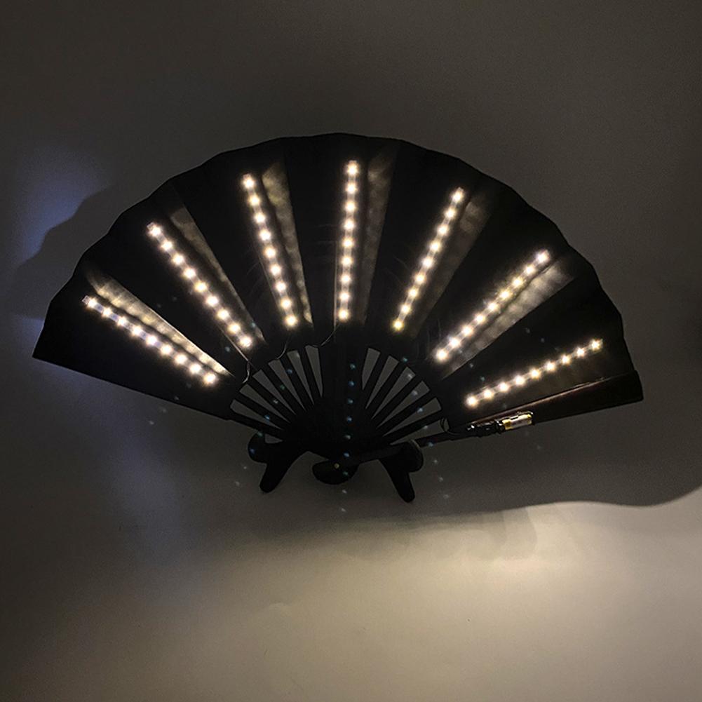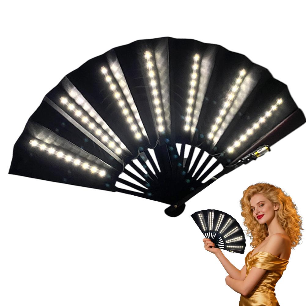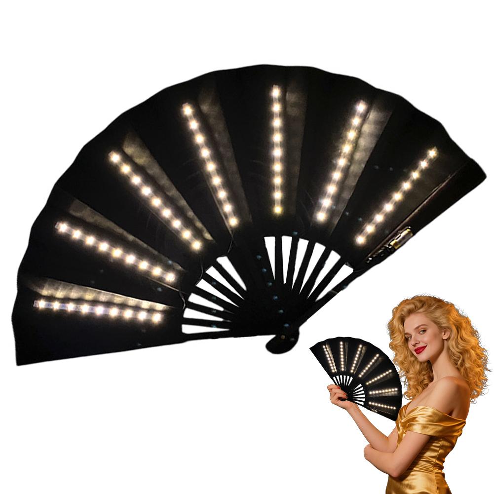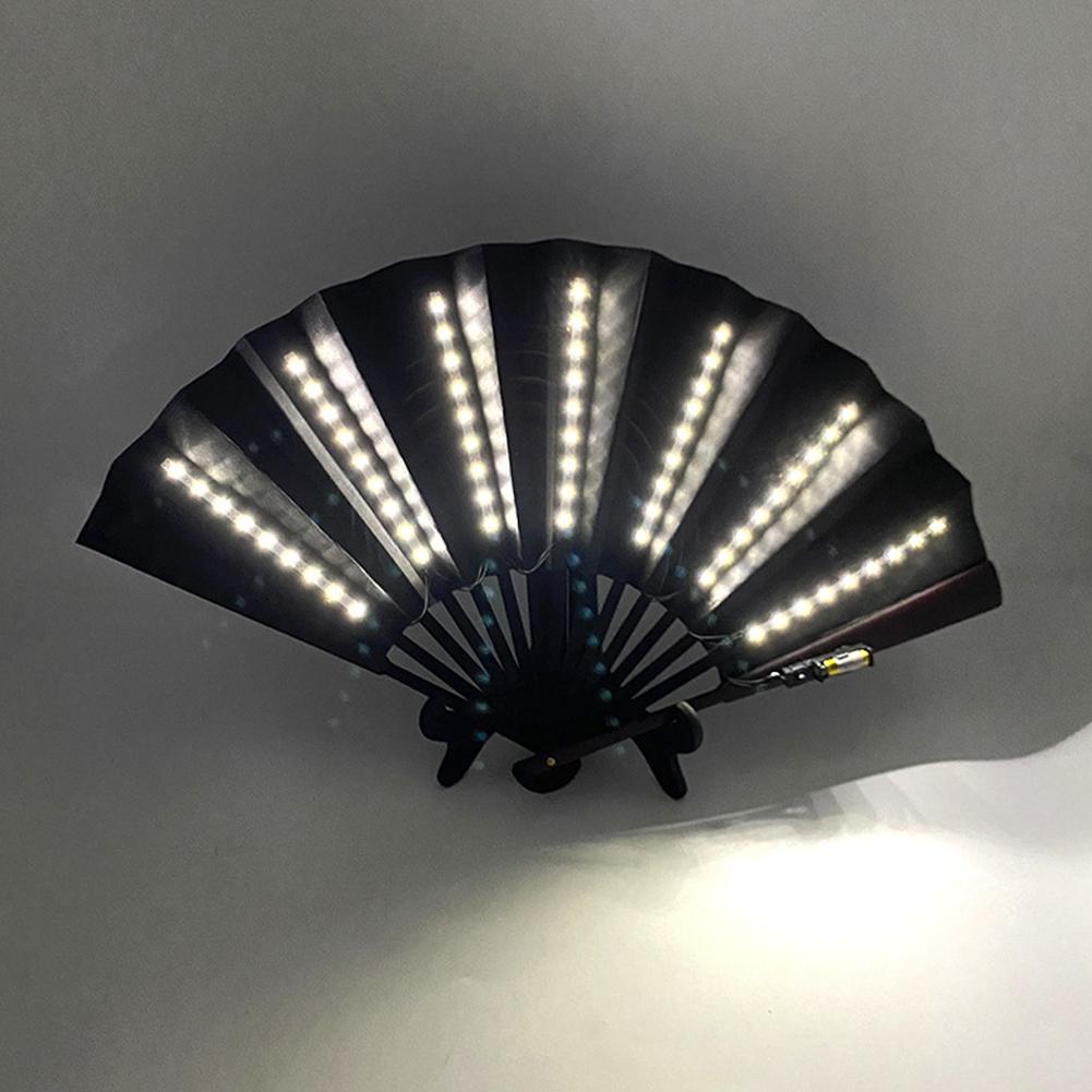 4. Elegant Folding Design: Thoughtfully engineered to fold compactly for effortless storage and carrying, this fan combines practical utility with a striking appearance that stands out, whether illuminating or simply enhancing your style.