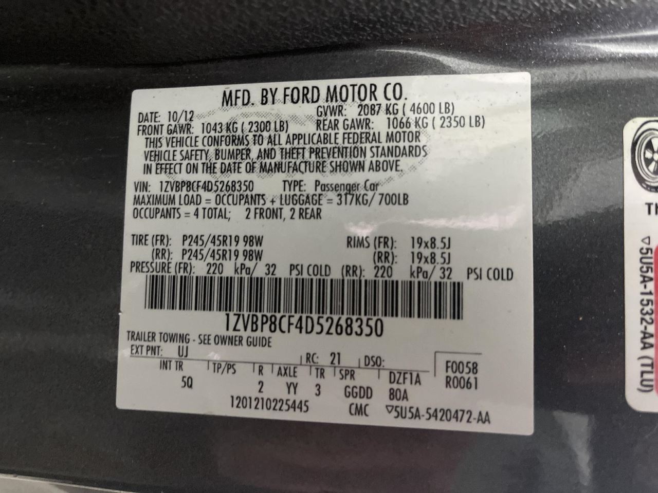 MUSTANG 11-12 display, w/o navigation system; ID BR3T-19C116-AA