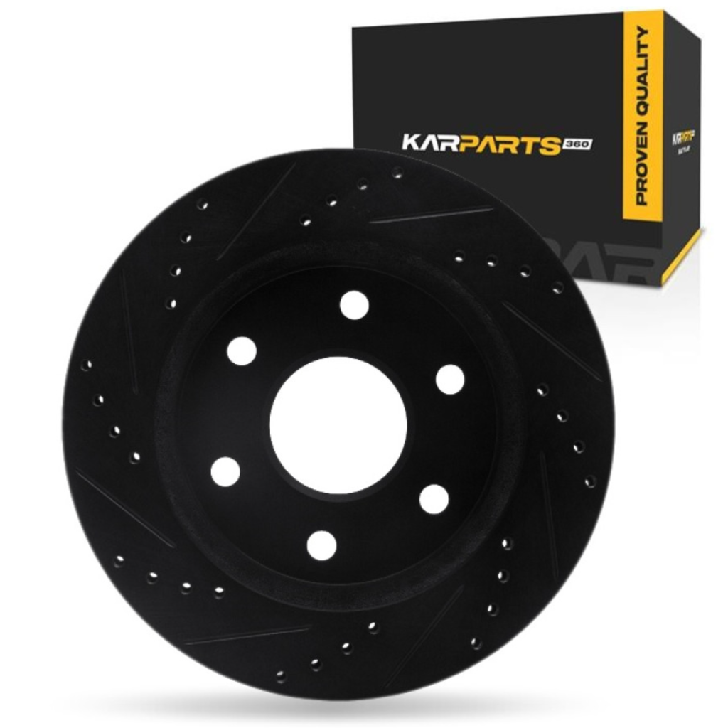 | KarParts360 For Toyota 4Runner 2025 2026 Brake Rotor Rear, Passenger Side | Cast Iron | Drilled And Slotted Style | Black Finish | 97 Millimeters/3.82 Inches Center Hole Diameter - Item Condition:Brand New in Original Box