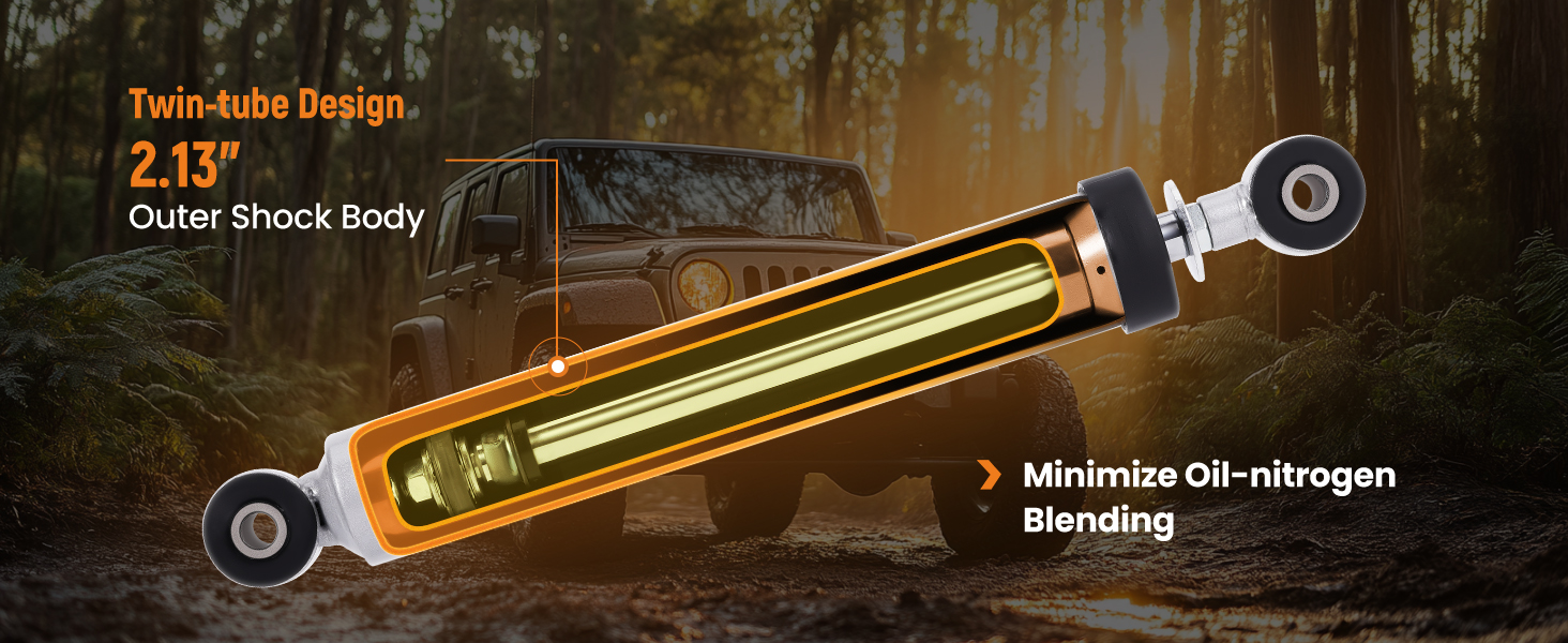 Premium twin-tube shock absorber charged with high-pressure nitrogen, engineered for maximum durability and consistent performance.
