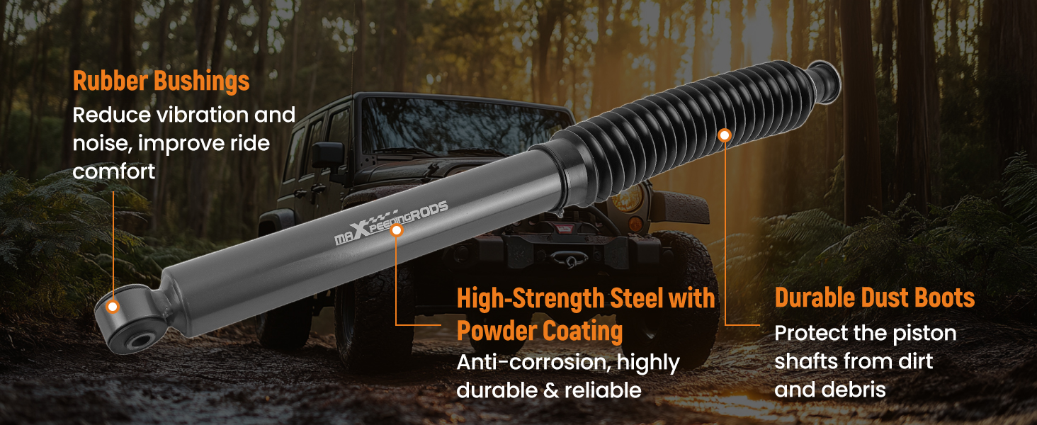Premium rubber bushings deliver superior shock absorption and smoother rides, reducing vibration and road noise.