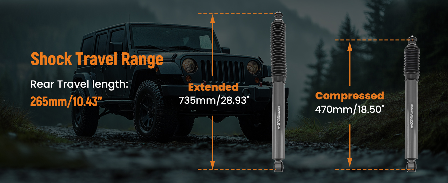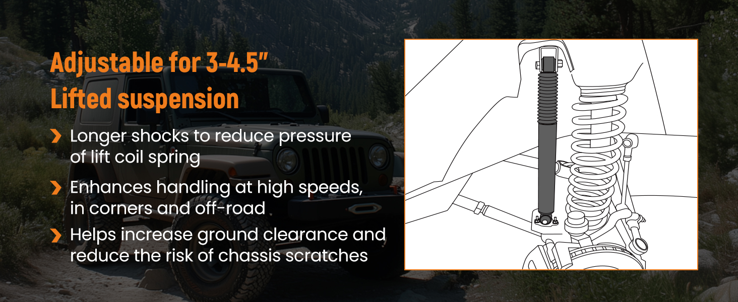 1 Pair Front Shock Absorbers for Jeep Wrangler JK 2007-2018 Fit 3"-4.5" Lift Kit